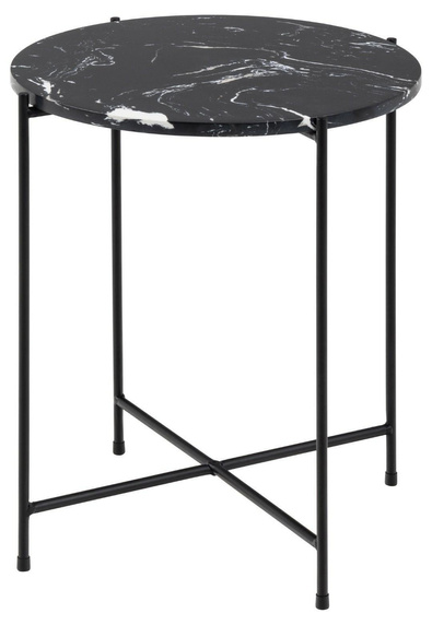 - Stolik kawowy Avila to niewielki, elegancki mebel idealny do salonu w stylu glamour. Posiada okrągły blat z czarnego marmuru oraz malowaną proszkowo podstawę złożoną z czterech nóg w kolorze czarnym. Nogi stolika zabezpieczone są nakładkami z tworzywa szt