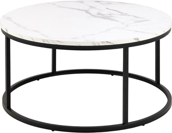 - Stolik Spiro będzie pasować do wnętrz w stylu glamour jak i nowoczesnym. Blat pokryty okleiną o wyglądzie białego marmuru nadaje stolikowi nowoczesnego charakteru, a w połączeniu z czarną, szorstką, malowaną proszkowo metalową podstawą, będzie pasował do
