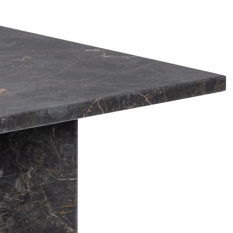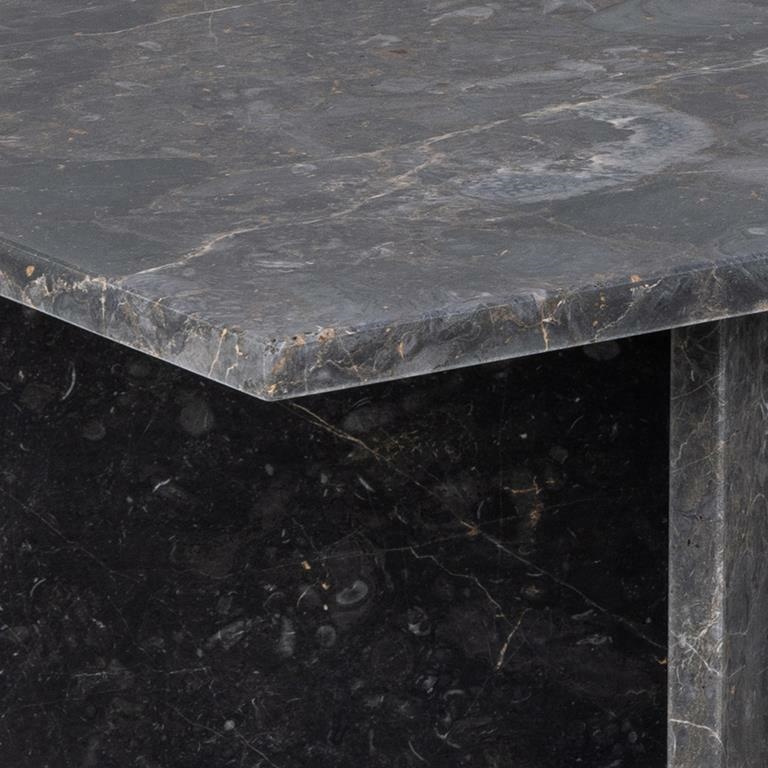 - Ten stolik kawowy wprowadzi do salonu ponadczasowe wyrafinowanie. Prostokątny blat i podstawa w kształcie litery V nadają pomieszczeniu wyjątkowego charakteru. Wykonany z brązowego marmuru z jasnymi żyłkami, kamień naturalnie różni się kolorem, strukturą