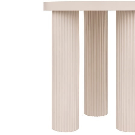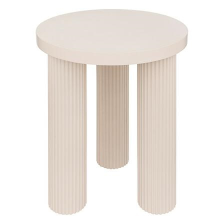 Stolik pomocniczy Tella wykonany został z wytrzymałej płyty MDF w kolorze kaszmirowym. Stolik Tella ozdobiony został trzema owalnymi nogami z modnymi lamelami. Blat stolika o średnicy 40cm gwarantuje wystarczająco dużo miejsca na książkę, kawę lub lampkę nocną. Max. obciążenie stolika 10kg. Stolik nie wymaga montażuCechy produktu