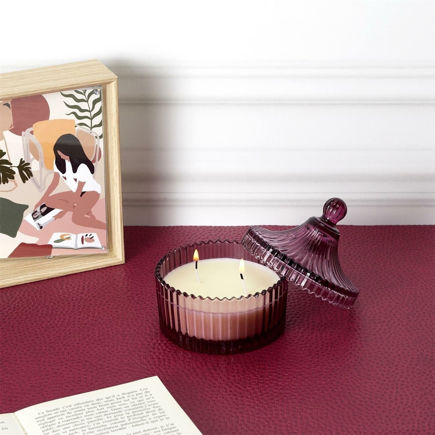 • Będziesz oczarowany świecą w świeczniku inspirowanego szkłem bohemskim. Świeca w pojemniku z pokrywką w komplecie daje nie tylko ciekawie rozproszone światło podczas gdy się pali. Świeca jest również fantastyczną ozdobą gdy się nie pali. Świeca perfumowan