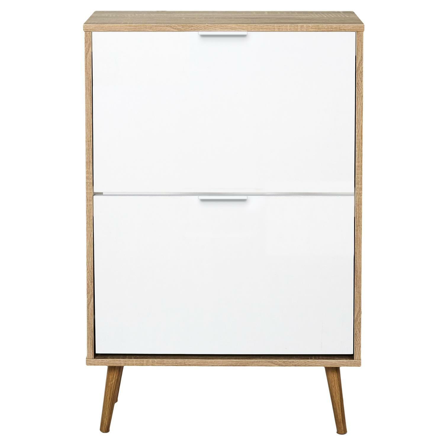 - Płytka szafka na buty w kolorze białym i frontach w okleinie drewnianej to dwudrzwiowy mebel, który pomoże w uporządkowaniu obuwia w przedpokoju. Szafka o głębokości 23,5 cm to idealny mebel do małego przedpokoju. Szafka posiada dwa fronty, które się uchy