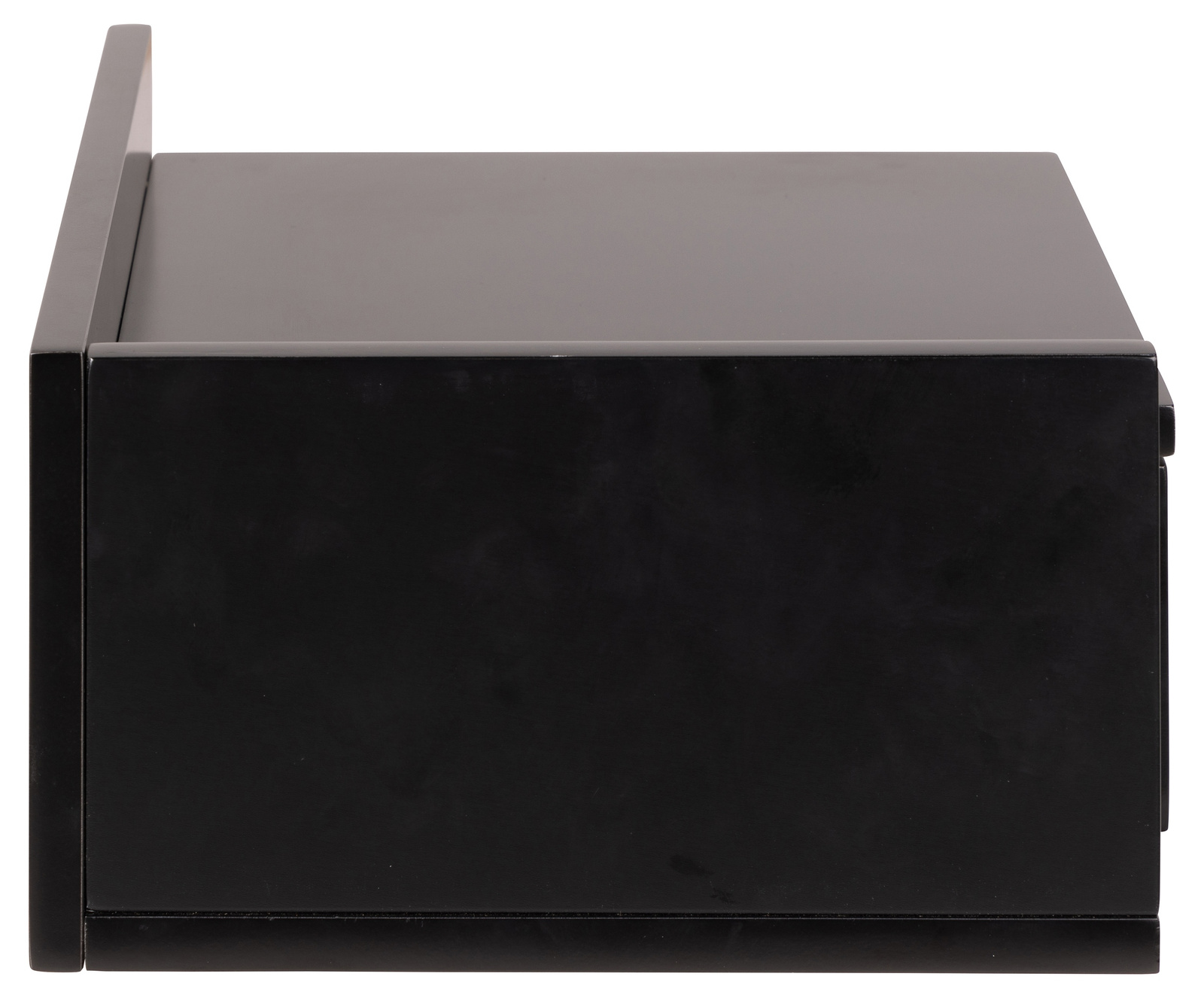 Szafka Ashlan doskonale nada się jako szafka nocna. Jej minimalistyczny kształt i geometria sprawiają że doskonale odnajdzie się w nowoczesnej sypialni, ale również salonie. Szafka wykonana została z płyty MDF. Szafkę Ashlan można postawić koło łóżka, ale również bez mniejszego problemu powiesić na ścianie. Szuflada pomieści drobne przedmioty a przestrzeń między blatami sprawdzi się jako półka na książki czy ulubioną gazetę. Szafka oprócz szuflady posiada także niewielką boczną półkę. Ilość kartonów: 1 Wymiary kartonów: 45,8x34,5x9cm Waga kartonów: 6,1kg