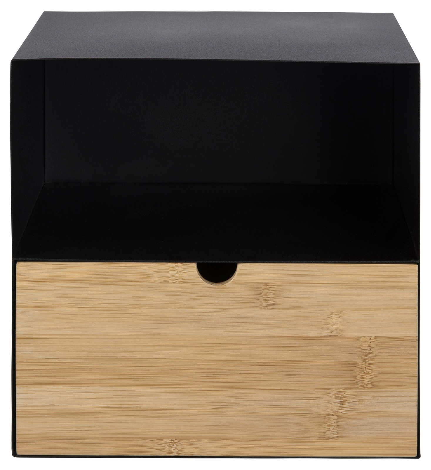 - Szafka nocna Joliet to minimalistyczny, nowoczesny mebel dla miłośników dobrego stylu. Korpus wykonany jest z malowanego proszkowo metalu, zaś szuflada z wytrzymałego bambusa. Szafka zapewnia możliwość personalizacji - szufladę można umieścić na górze lub