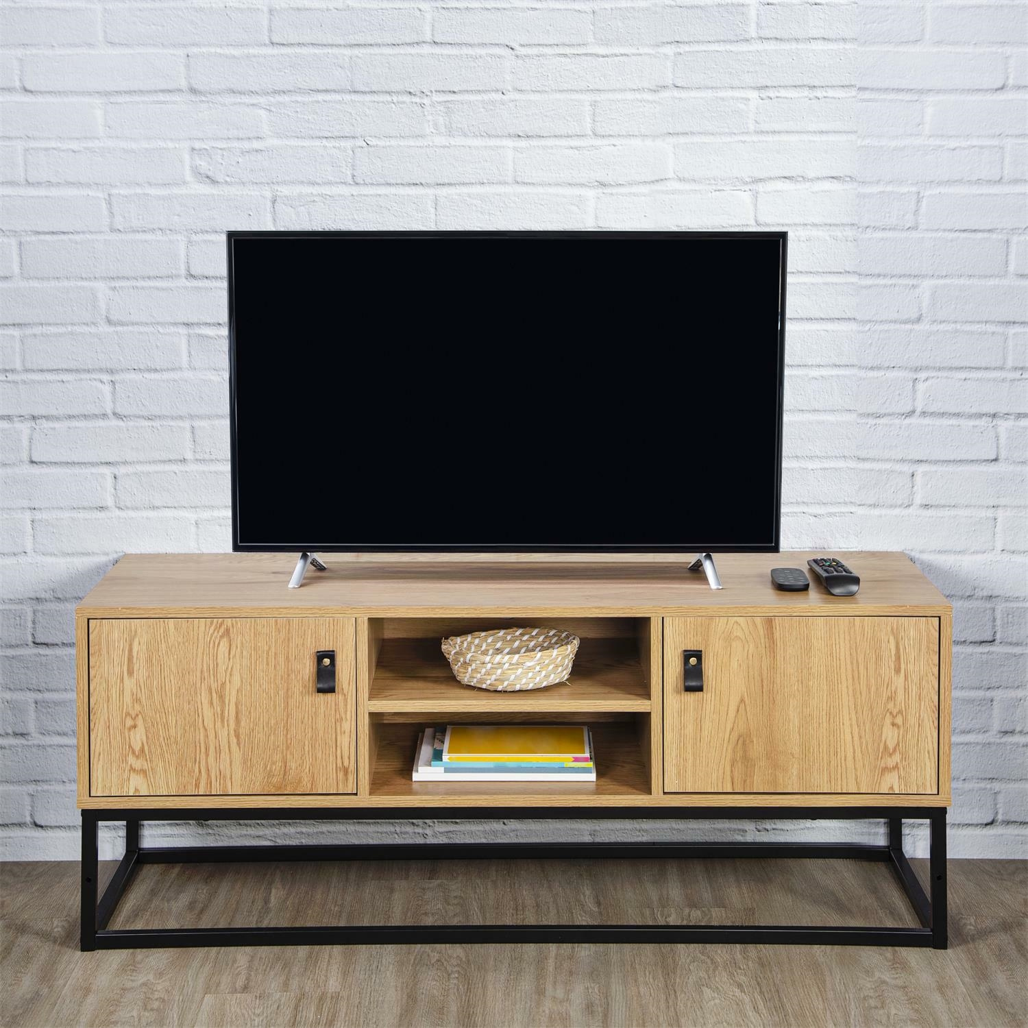 Szafka RTV to mebel niezbędny w każdym salonie. Choć bardzo zgrabna – wyjątkowo pojemna. Niewielkie gabaryty pozwalają pomieścić wszystko, co w takiej szafce powinno być pod ręką. Szafka posiada dwie szafki zamykane z uchwytem z eko skóry i dwie otwarte, przestronne półki. Do tego gładki blat, który stanowi dodatkową przestrzeń użytkową. Zamiast tradycyjnych nóg, wykorzystaliśmy metalowy czarny malowany proszkowo stelaż, na którym mebel solidnie wspiera swój ciężar. Szafka RTV powstała z bardzo mocnej i odpornej na intensywne użytkowanie płyty laminowanej. Elegancki kolor w odcieniu złotego dębu, z dekorami imitującymi do złudzenia naturalne wybarwienie i słoje drewna, uzupełnia stalowa konstrukcja w kolorze czarnym. Waga szafki: 21 kg Max ilość szt. w kartonie: 1 Wymiary kartonu: 120cm x 40cm x 10cmCechy produktu