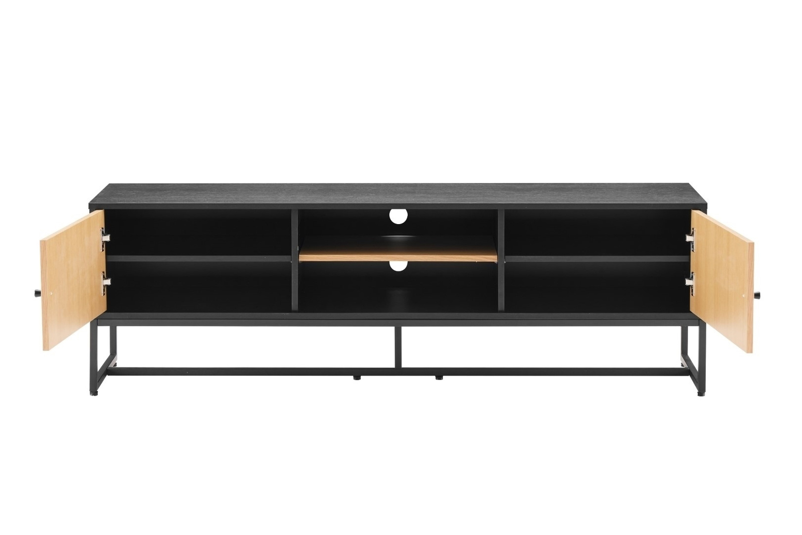 Metalowa rama malowana proszkowo na czarno. Półki i fronty wykonane z MDF z okleiną imitującą dąb Regał: 1 półka i 2 szafki Szafka z funkcją cichego domyku. Wymaga montażu Wymiary kartonu: 171,5x51x13cmCechy produktu