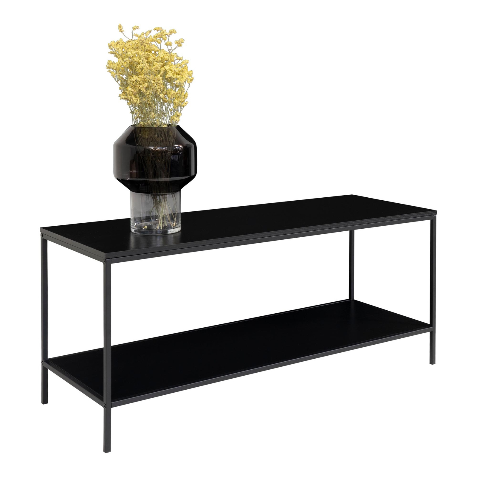 Szafka RTV o prostej, nienachalnej konstrukcji wpisze się we wnętrzu zarówno loftowym jak i boho. Regał złożony z dwóch blatów w okleinie imitującej dąb wsparty został na szkielecie z metalu pomalowanego proszkowo na czarno. Prostota mebla sprawia, że jest on idealną bazą dla naszej przestrzeni, która możemy ozdobić lustrami, figurkami lub ciekawymi dużymi koszami. Waga szafki: 7,8 kg Okleina imitująca dąb Wymiary opakowania: 105x38x6 cmCechy produktu