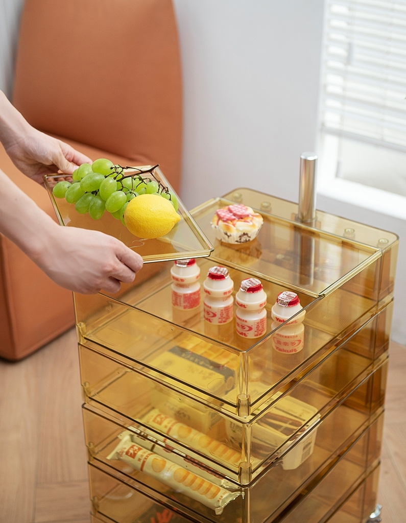 - Szafka VISION w całości została wykonana z poliwęglanu, tworzywa lekkiego, a zarazem bardzo wytrzymałego. Jest transparentna, dzięki czemu doskonale sprawdzi się w niewielkich pomieszczeniach. Posiada pięć obrotowych szuflad i cztery praktyczne kółeczka z