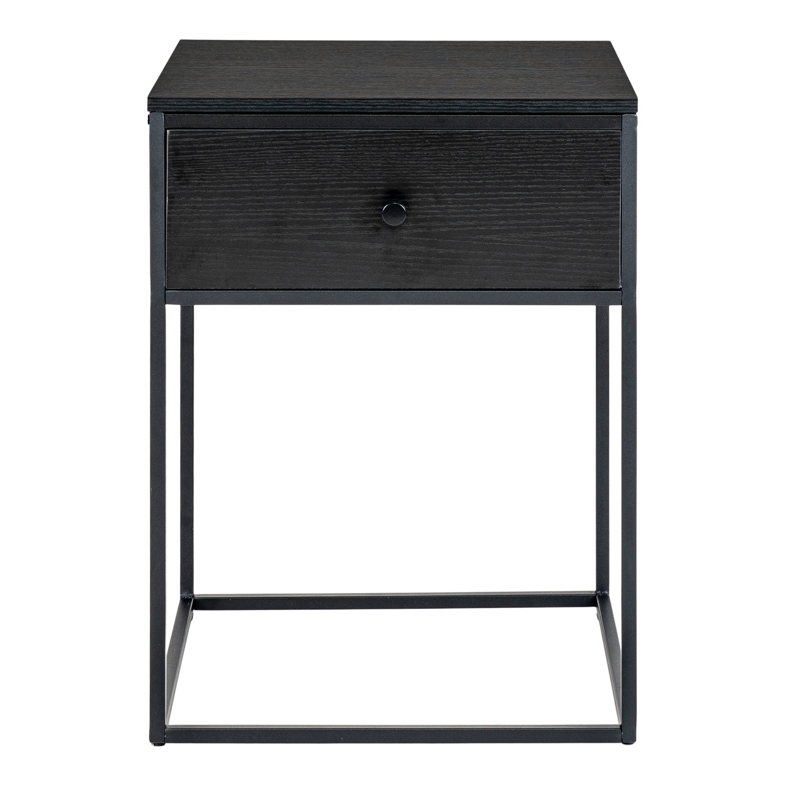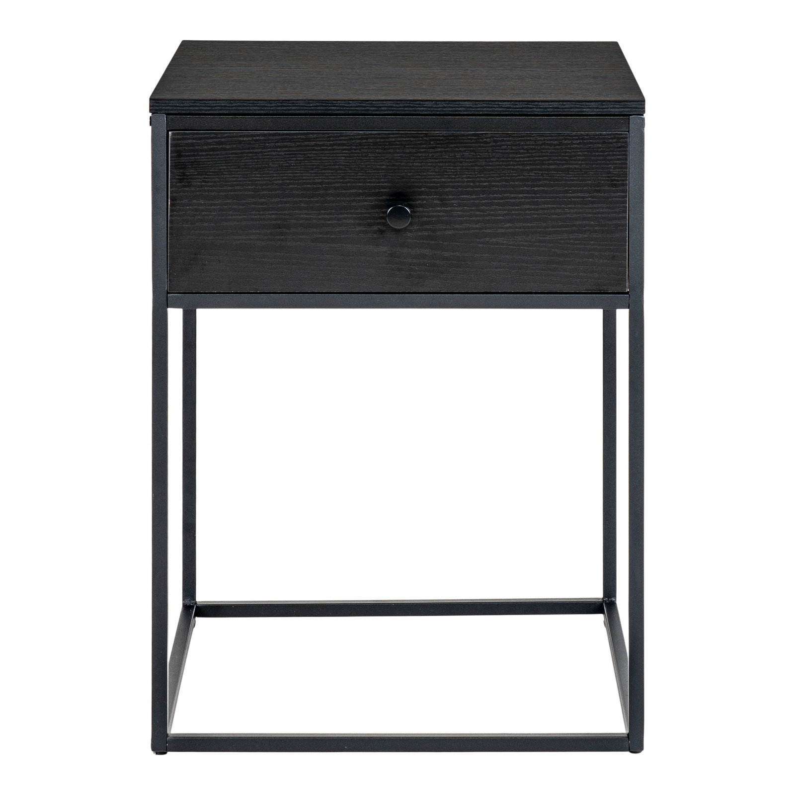 - Loftowa, czarna szafka z szufladą sprawdzi się w sypialni lub gabinecie. Czarna szafka Vita to minimalistyczny mebel wykonany z płyty MDF oraz metalu malowanego proszkowo. Szafka wyposażona została w szufladę z czarnym uchwytem. Wymiary opakowania: 55x42x