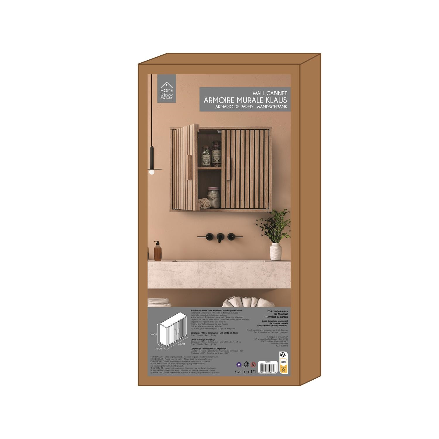 Szafka wisząca Klaus to idealny mebel nad pralke lub nad umywalkę. Dzięki szafce zyskamy więcej miejsca do przechowywania kosmetyków lub detergentów. Szafka do samodzielnego montażu. Szafka wykonana z płyty MDF w okleinie imitującej dąb. Fronty wykonanez pionowych lameli. . Wymaga montażu. Max obciążenie 20kgCechy produktu