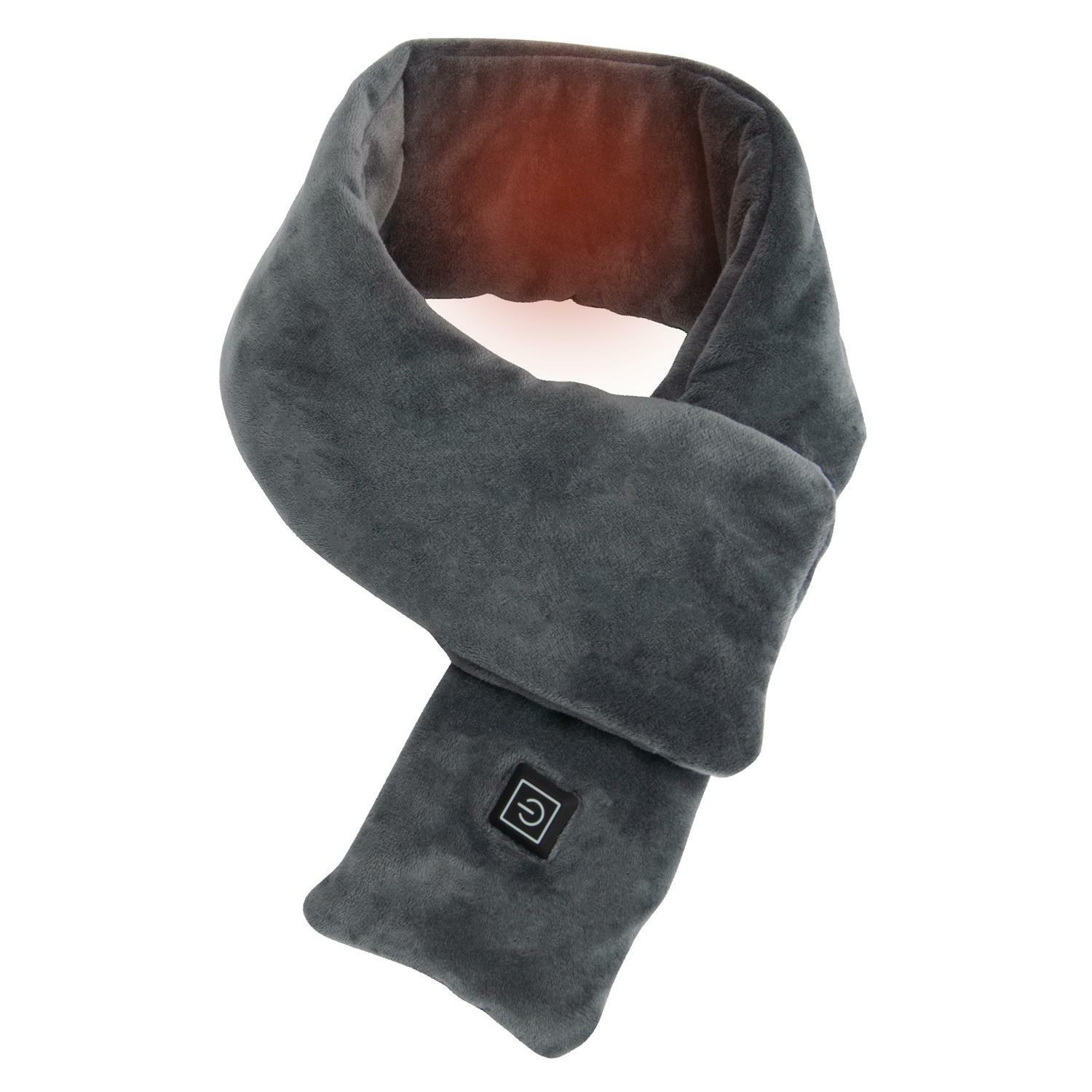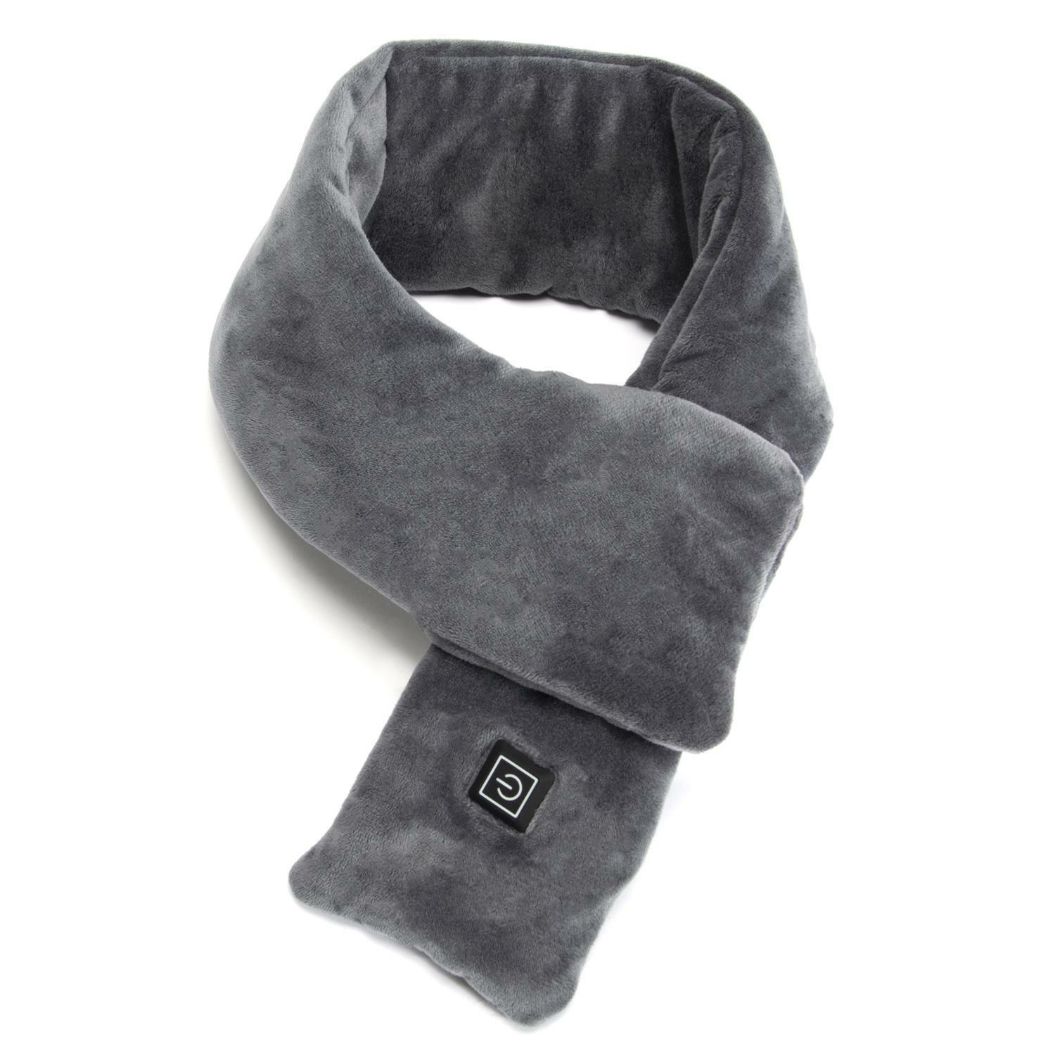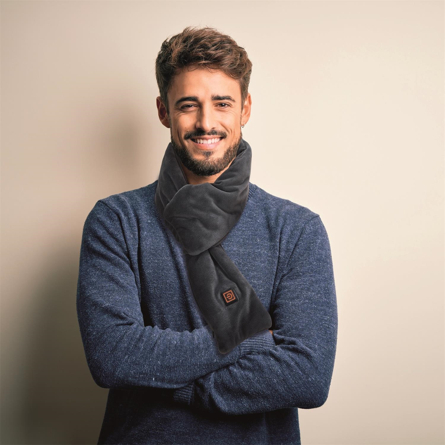 - Rozgrzewający szalik z opcją ładowania przez USB to na pewno nietypowe rozwiązanie, które przyniesie komfort podczas mroźnych zimowych dni. Szary szal wyposażony został w akumulatorek, który ładujemy, a powolne uwalnianie ciepłą włączamy a pomocą guzika n