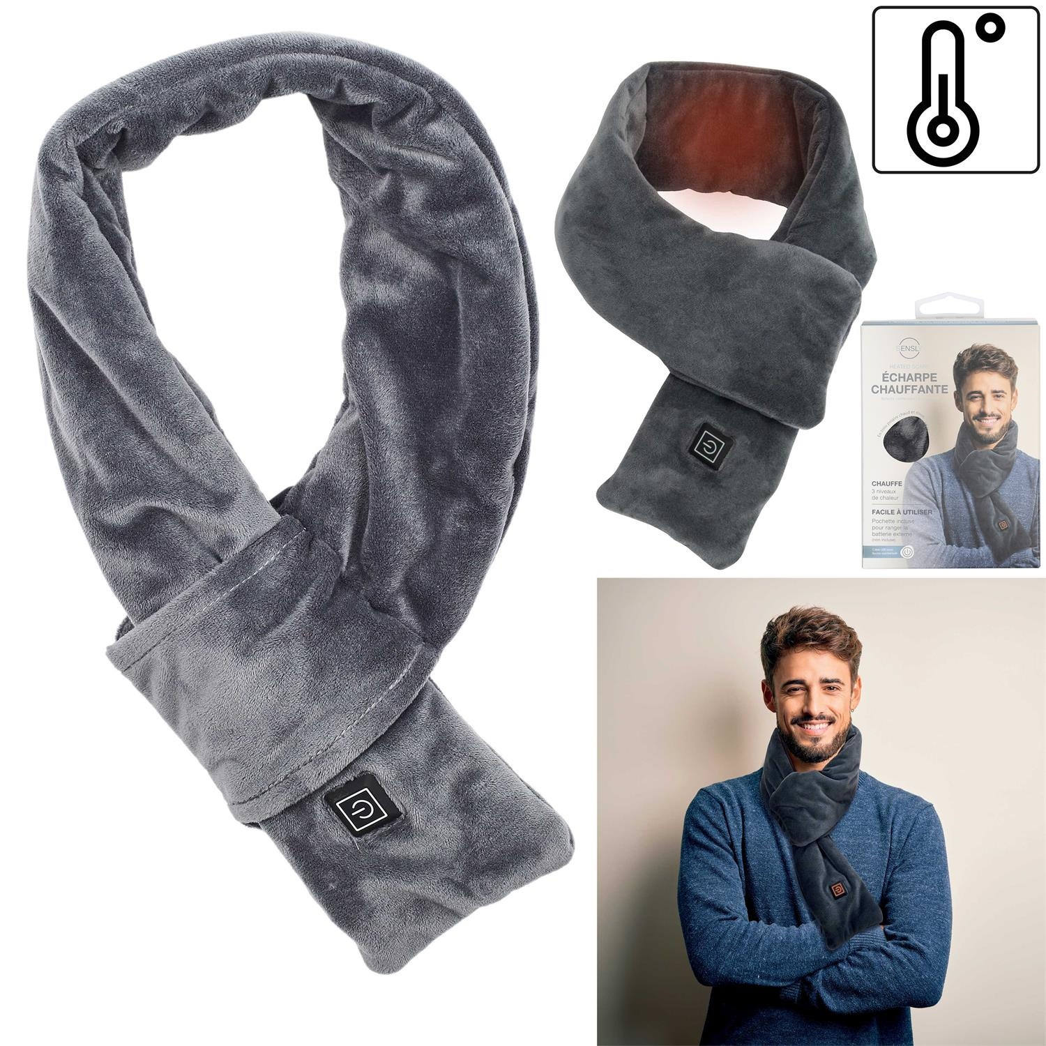 Rozgrzewający szalik z opcją ładowania przez USB to na pewno nietypowe rozwiązanie, które przyniesie komfort podczas mroźnych zimowych dni. Szary szal wyposażony został w przewód USB, który możemy podłączyć pod power-bank a powolne uwalnianie ciepłą włączamy a pomocą guzika na końcu szala.Cechy produktu