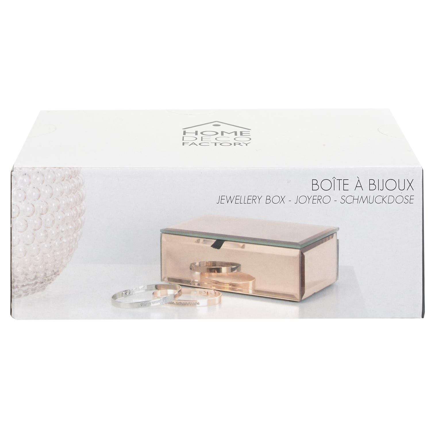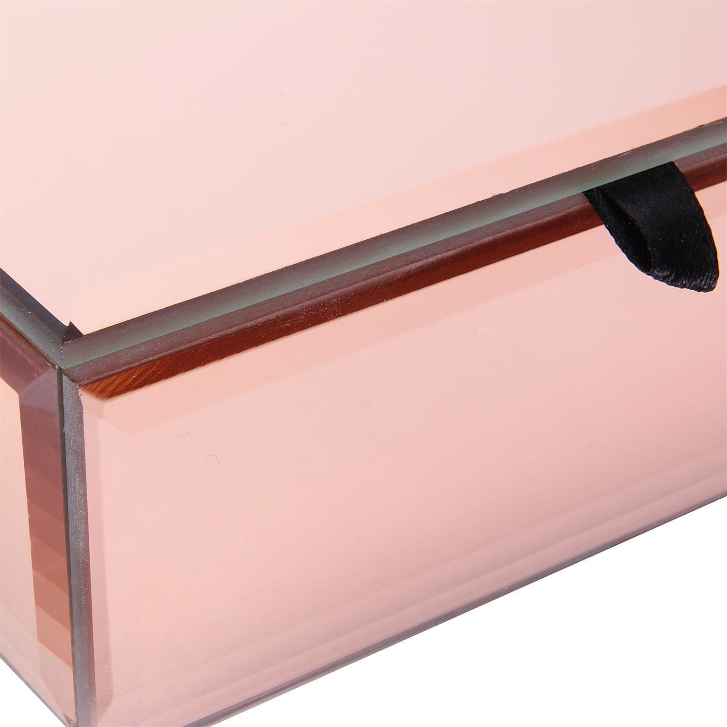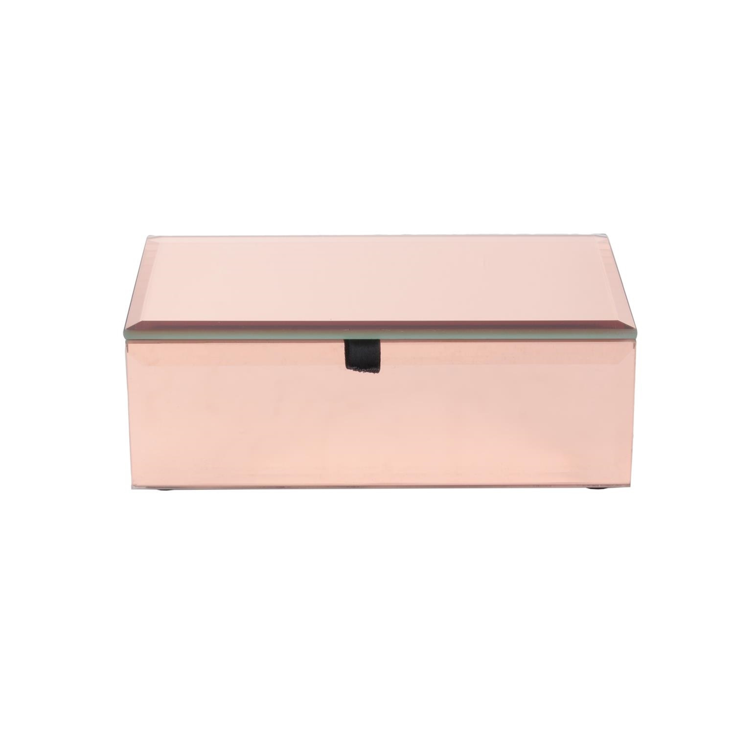 Piękna szkatułka na biżuterię z miedzianego szkła będzie świetnie wyglądać na Twojej toaletce. Przechowuj w nim swoją najpiękniejszą biżuterię i ciesz się nie tylko idealnym porządkiem w biżuterii ale również z ciekawej aranżacji dzięki sztkatułce. Lustrzana szkatułka w kolorze różowego złota sprawdzi się we wnętrzu glamour. Wymiary kartonu: 27x15x36cm, Max 8szt w kartonieCechy produktu