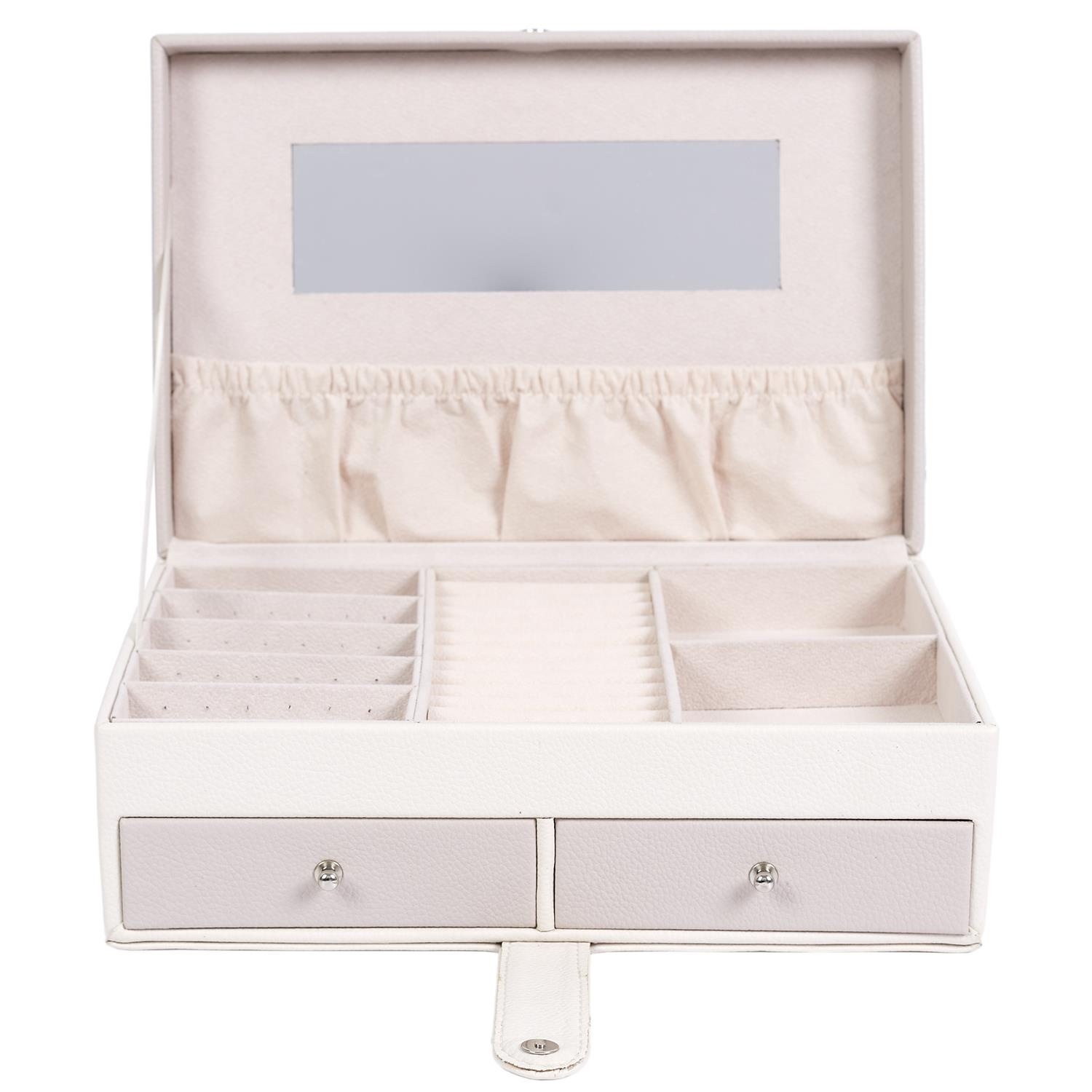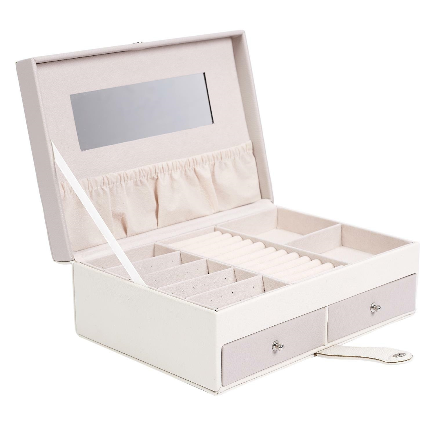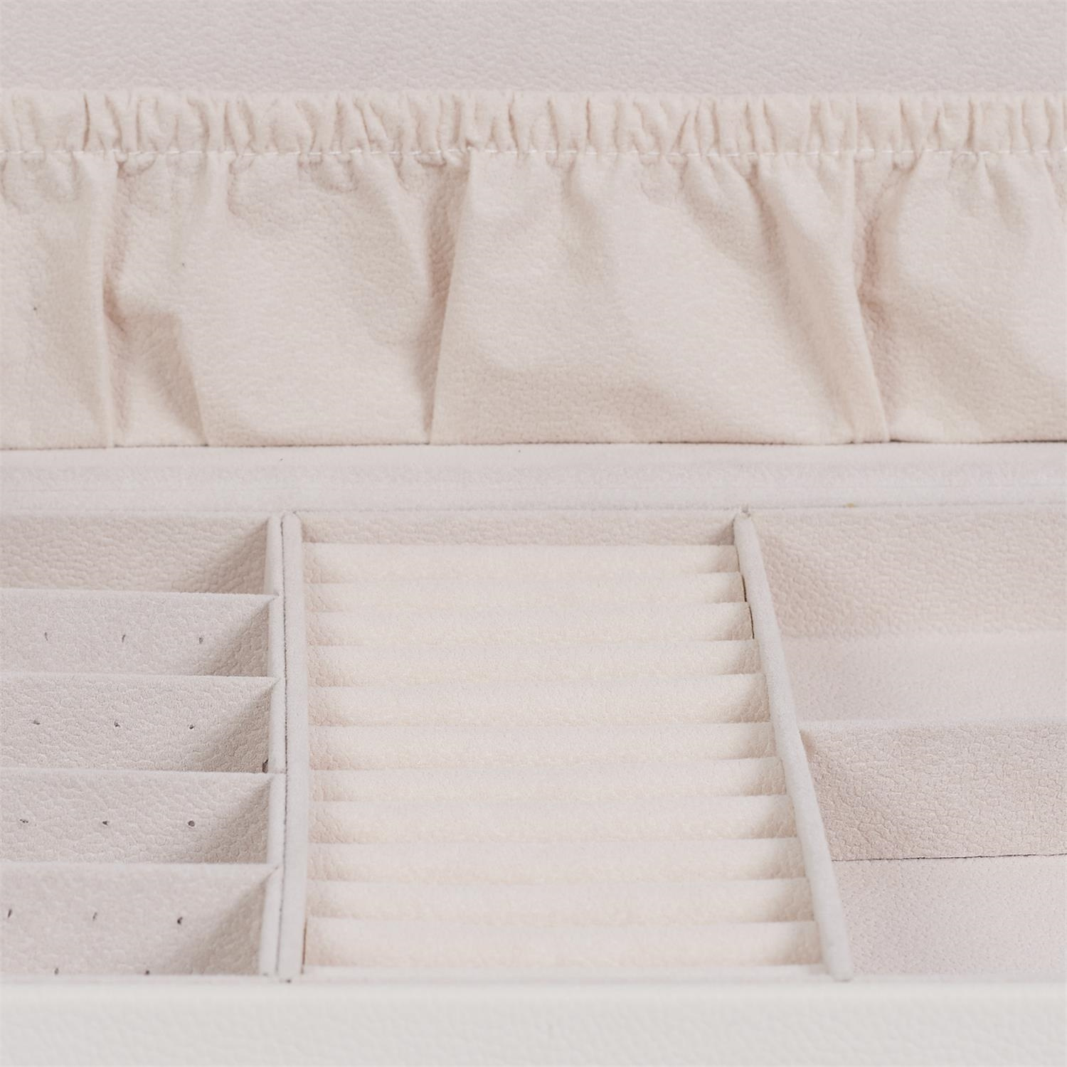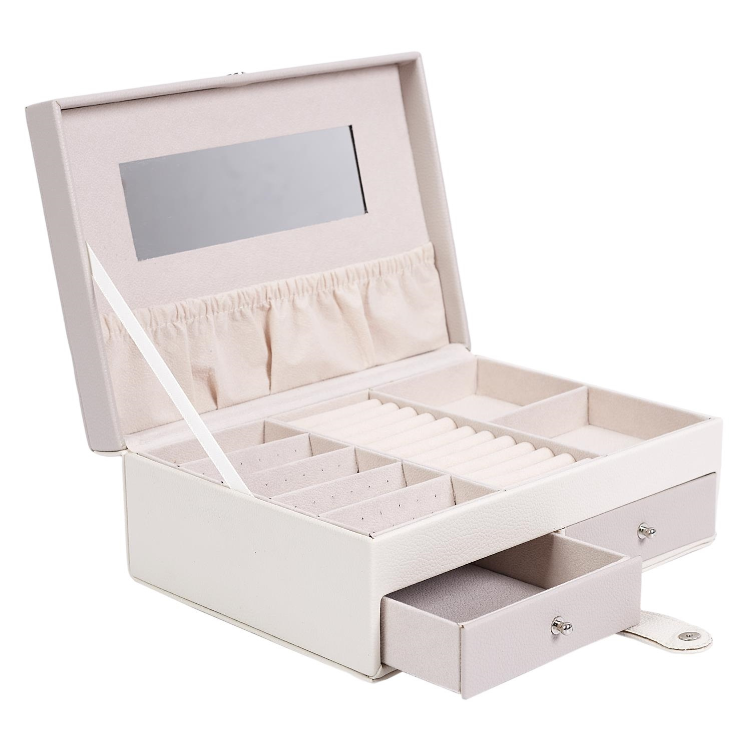 - Szkatułka Lady to wszystko czego potrzebujesz, aby utrzymać ład i porządek wśród swojej biżuterii. Posiada ona wiele przegródek na pierścionki, kolczyki czy bransoletki. W środku wyściełana jest przyjemną w dotyku tkaniną. Jej atuty to także dwie pojemne