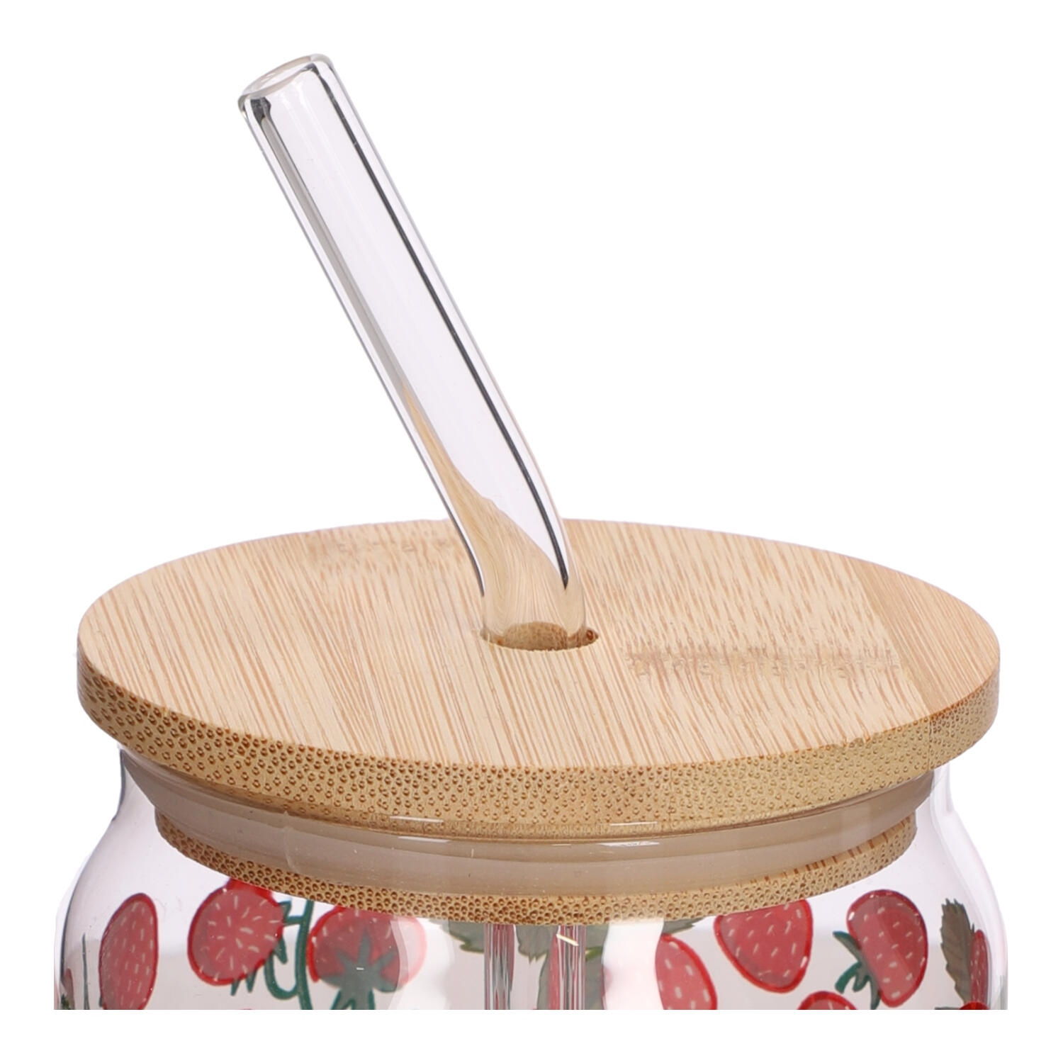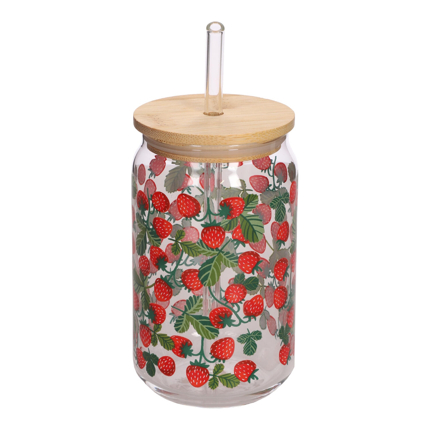 Szklanka z pokrywką i słomką Soleo 530ml poziomki