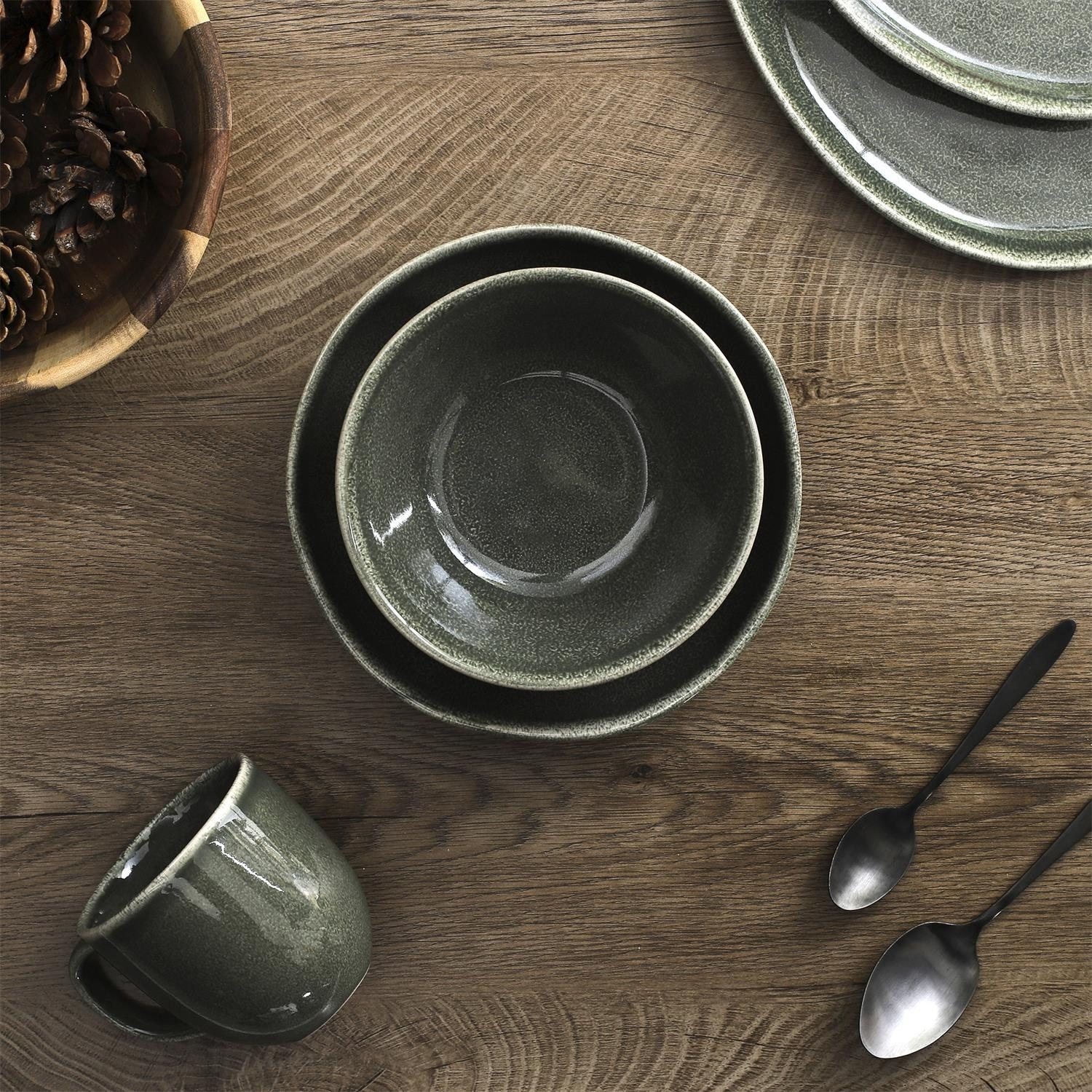 Głęboki talerz z serii Black forest charakteryzuje się nieregularnym kształtem, szaro-zielonym kolorem ceramiki oraz szkliwionym wykończeniem. Seria Black forest nawiązuje do glinianych talerzy. Można myć w zmywarce, można używać w mikrofalówce, Nie można używać w piekarniku i w zamrażarceCechy produktu