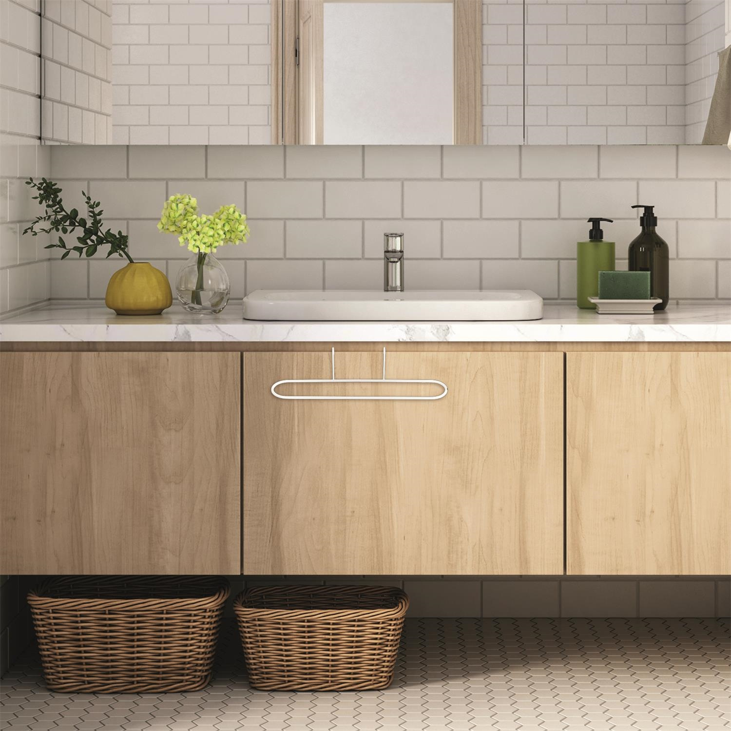Metalowy, biały wieszak na ściereczki lub ręcznik sprawdzi sie w domu w którym każda przestrzeń jest na wagę złota, a jego domownicy cenią sobie podręczne i praktyczne rozwiązania. Uchwyt pozwoli na powieszeniu na froncie szafki kuchennej lub łazienkowej ręcznika lub ścierki. Uchwyt wykonany został z metalu, jest odporny na wilgoć, a jego kształt gwarantuje dobre zużycie przestrzeni, którą zajmuje. Max. obciążenie 1kg. Wieszak nie wymaga montażu, jest gotowy do użytku. Kompatybilny ze standardowymi ffrontami o szerokości do 3 cm.Cechy produktu