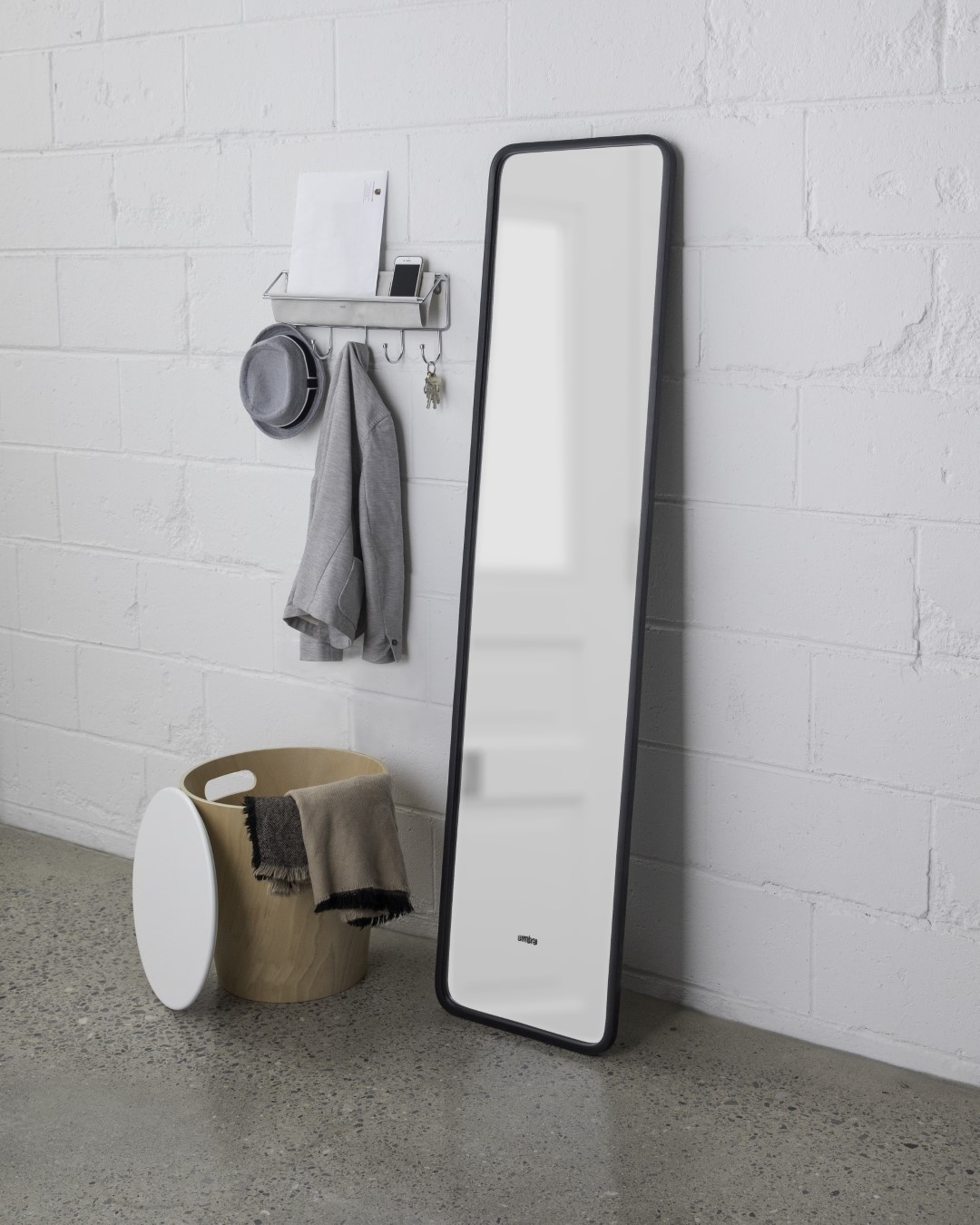 • UMBRA lustro ścienne HUB czarne. To gigantyczne lustro można zamontować lub oprzeć o ścianę, w zależności jak chcemy zagospodarować naszą przestrzeń. Jego gumowa rama dodaje nowoczesnego akcentu i działa jak zderzak, dzięki czemu lustro jest trwałe i świe
