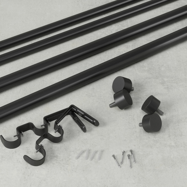 UMBRA podwójny karnisz CAPPA 168 - 305 szczotkowana czerń. Każdy karnisz Cappa firmy Umbra jest wykonany z wysokiej jakości metalu. Zestaw podwójnych karniszy można regulować i zapewnić elastyczność w zakresie konfiguracji jednego lub dwóch paneli zasłonowych w zależności od potrzeb. Można na niej zawiesić różne rodzaje zasłon o maksymalnej wadze do 10 kg. Wszystkie niezbędne przedmioty będą dołączone do przesyłki w tym metalowe końcówki, regulowane wsporniki, śruby, kotwy do płyt kartonowo-gipsowych. Wsporniki z podwójnymi prętami należy, umieszczać 15 cm od ściany Pręt o średnicy 2,5 cm zawiera tylny pręt, o średnicy 3/4 Pręt o średnicy 3,2 cm zawiera tylny pręt, o średnicy 2,5 cm Długość obejmuje 36 - 66 obejmuje dwa wsporniki, wszystkie pozostałe zawierają trzy wsporniki Waga: 1,8 kg.Cechy produktu