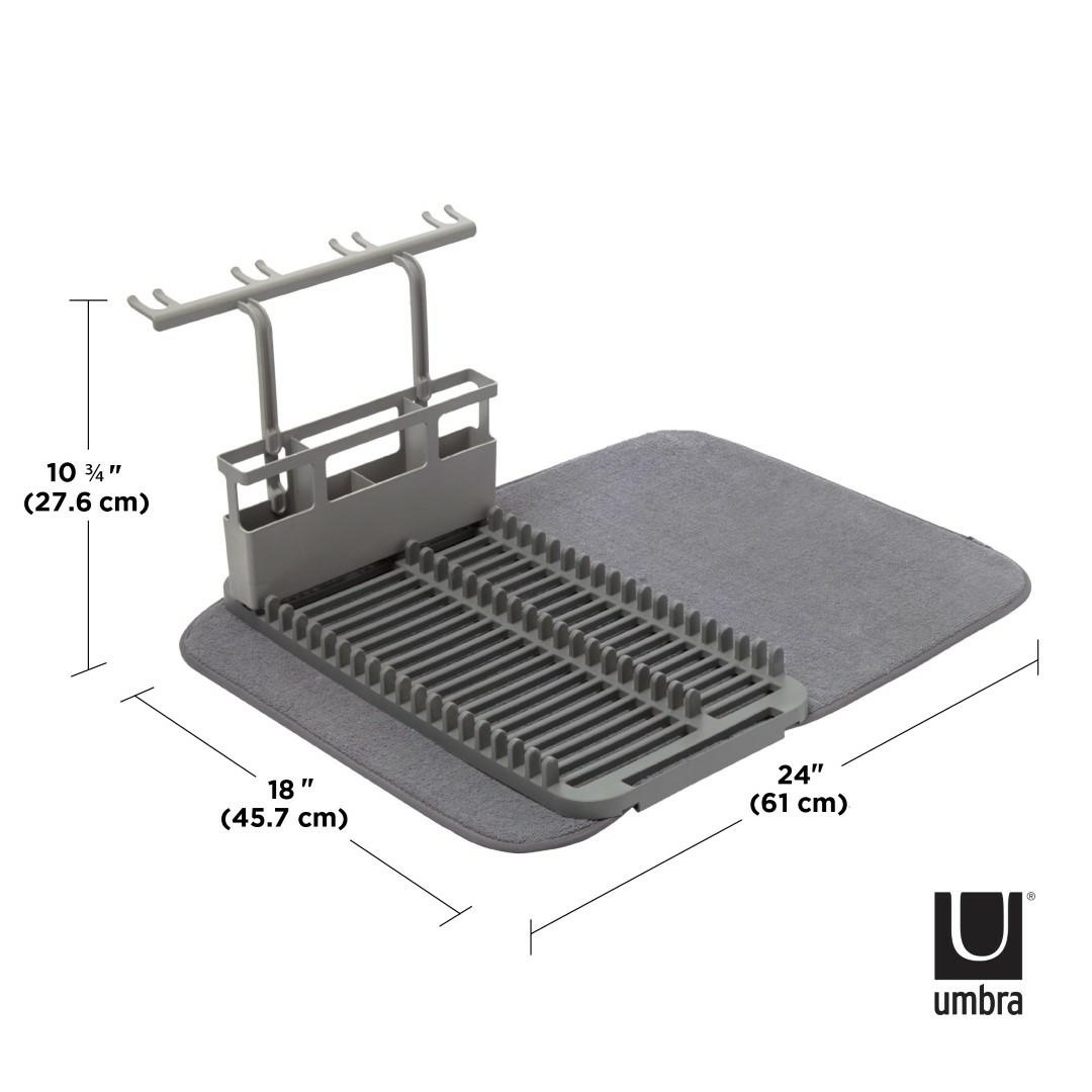 - Innowacyjne rozwiązanie do małych kuchni. Lekka i niezwykle chłonna suszarka do naczyń Udry marki Umbra to kompaktowy sposób na organizację naczyń i sztućców. Udry składa się z maty absorbującej wilgoć oraz stojaka na naczynia, sztućce i kuchenne akcesori