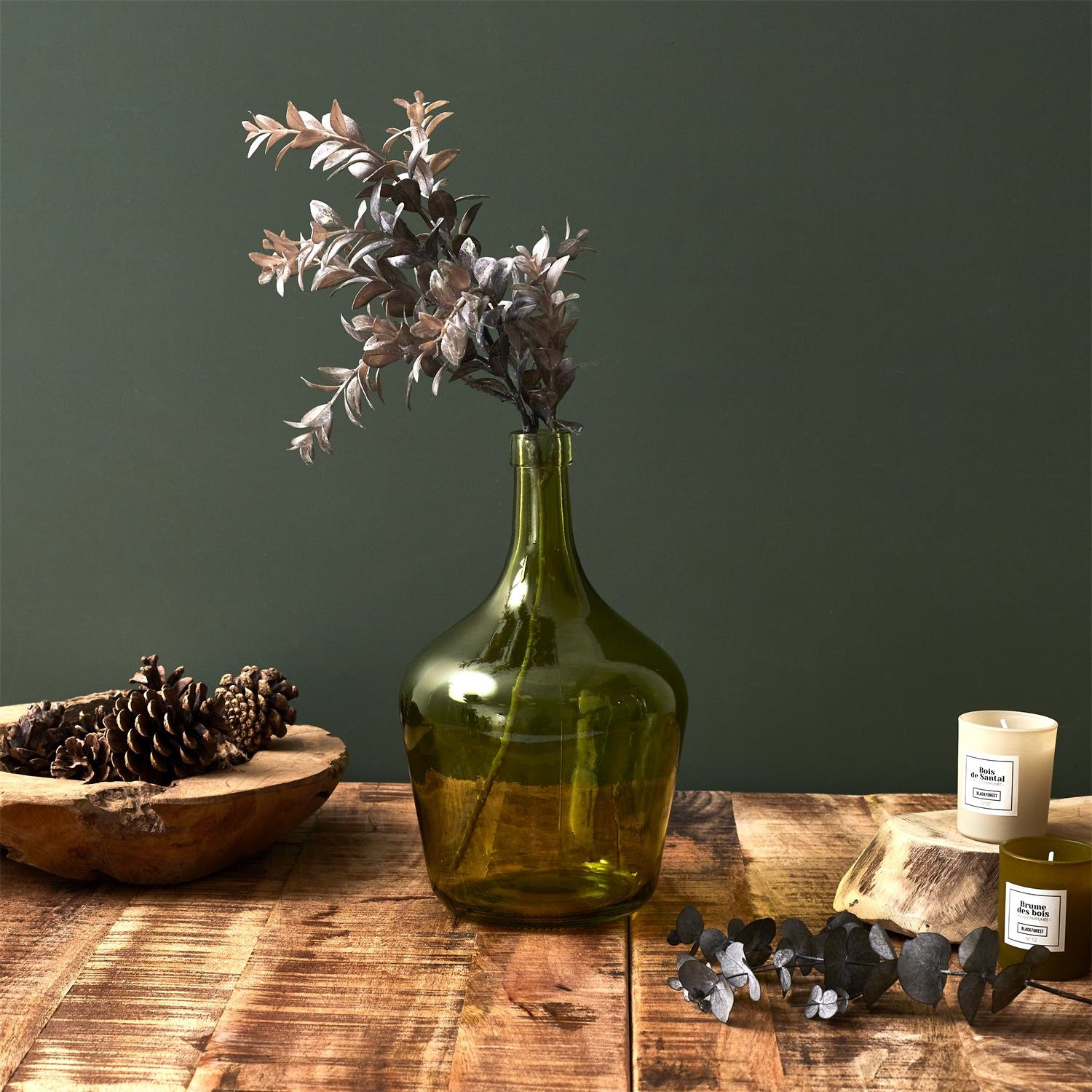 - Szklany wazon o charakterystycznym kształcie to ciekawy dodatek, który urozmaici wnętrze. Wazon sprawdzi się nie tylko jako pojemnik na świeże kwiaty, ale również możemy śmiało postawić go samego na komodzie lub regale.