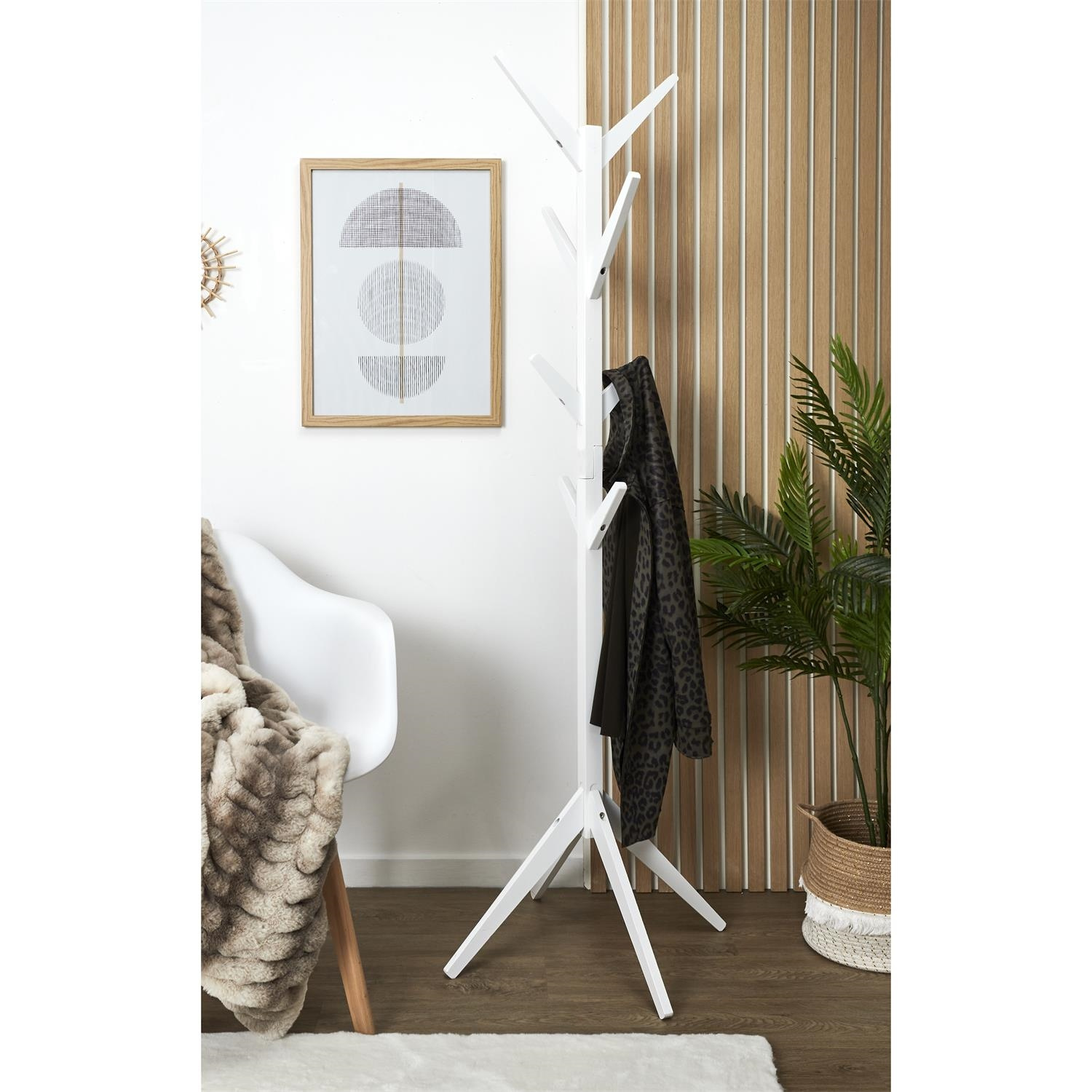 Drewniany, wysoki wieszak podłogowy sprawdzi się w przedpokoju lub poczekalni. Wieszak wykonany z lakieroanego MDF. Jego haki zrobione zostały również z wytzymałej płyty MDF o ciekawym i nietypowym kształcie. Wymaga montażu Max. obciążenie na 1 haczyk 3kg. Wieszak skłąda się z 8 haków do zawieszania ubrań. Wnieś nowoczesny wygląd i styl do swojego przedpokoju lub poczekalni.Cechy produktu