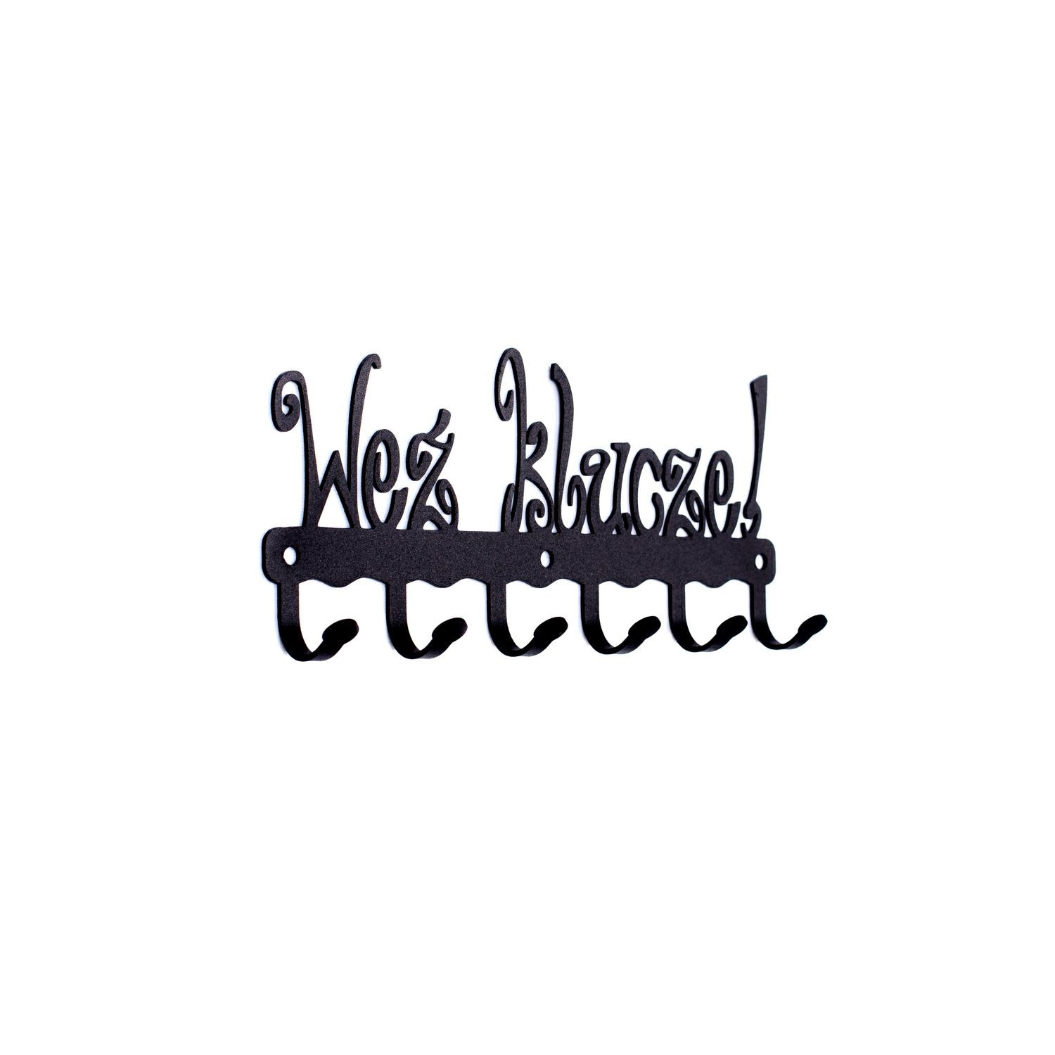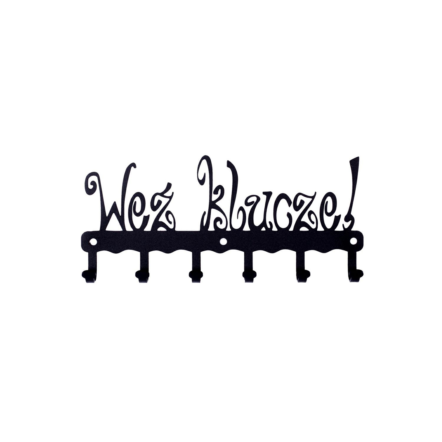 - Wieszak ścienny Weź klucze to stylowe rozwiązanie do przedpokoju, holu lub recepcji. Wzór, z napisem przypominającym o zabraniu ze sobą kluczy, nada uroku każdemu wnętrzu. Stalowy malowany proszkowo wieszak jest praktyczny oraz odporny na uszkodzenia. Mat