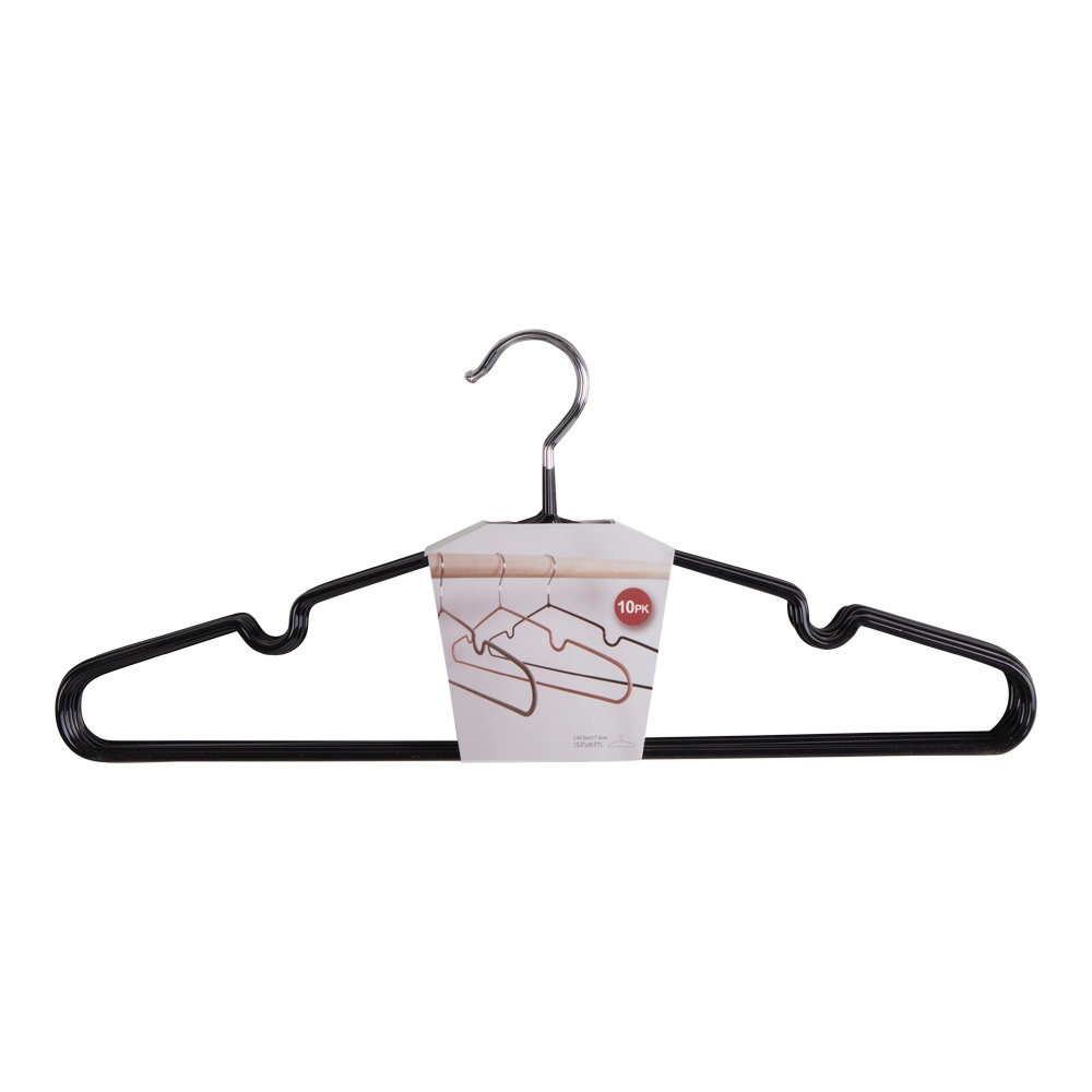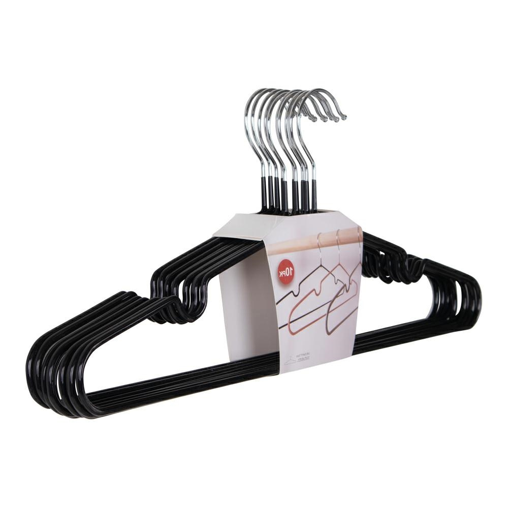 Zestaw 10 metalowych wieszaków to stylowe i wytrzymałe akcesoria do przechowywania ubrań. Wykonane z trwałego metalu, zapewniają solidne podparcie dla odzieży, zapobiegając zagnieceniom. Smukła konstrukcja pozwala zaoszczędzić miejsce w szafie, a elegancki czarny kolor dodaje wnętrzu subtelnego uroku. Idealne do wieszenia koszul, sukienek, spodni czy marynarek. Świetne do domowej garderoby oraz butików. Materiał: MetalCechy produktu