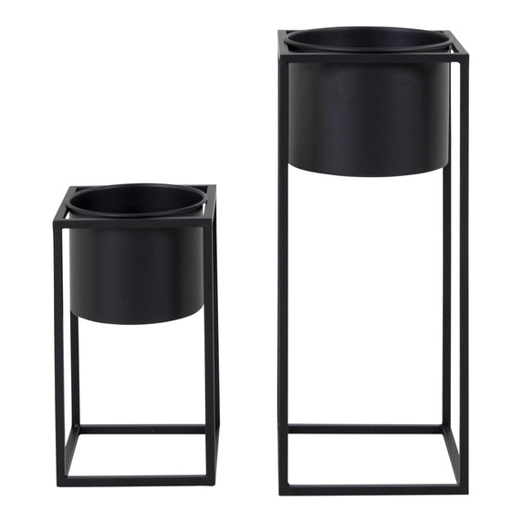 Zestaw dwóch kwietników z metalu malowanego proszkowo. Wymiary: większy: wysokość: 50,5 cm, szerokość: 19,5 cm, głębokość: 19,5 cm mniejszy: wysokość: 31cm, szerokość: 17 cm, głębokość 17 cm Wymiary opakowania: 22x22x53 cm Waga paczki: 2,4 kgCechy produktu