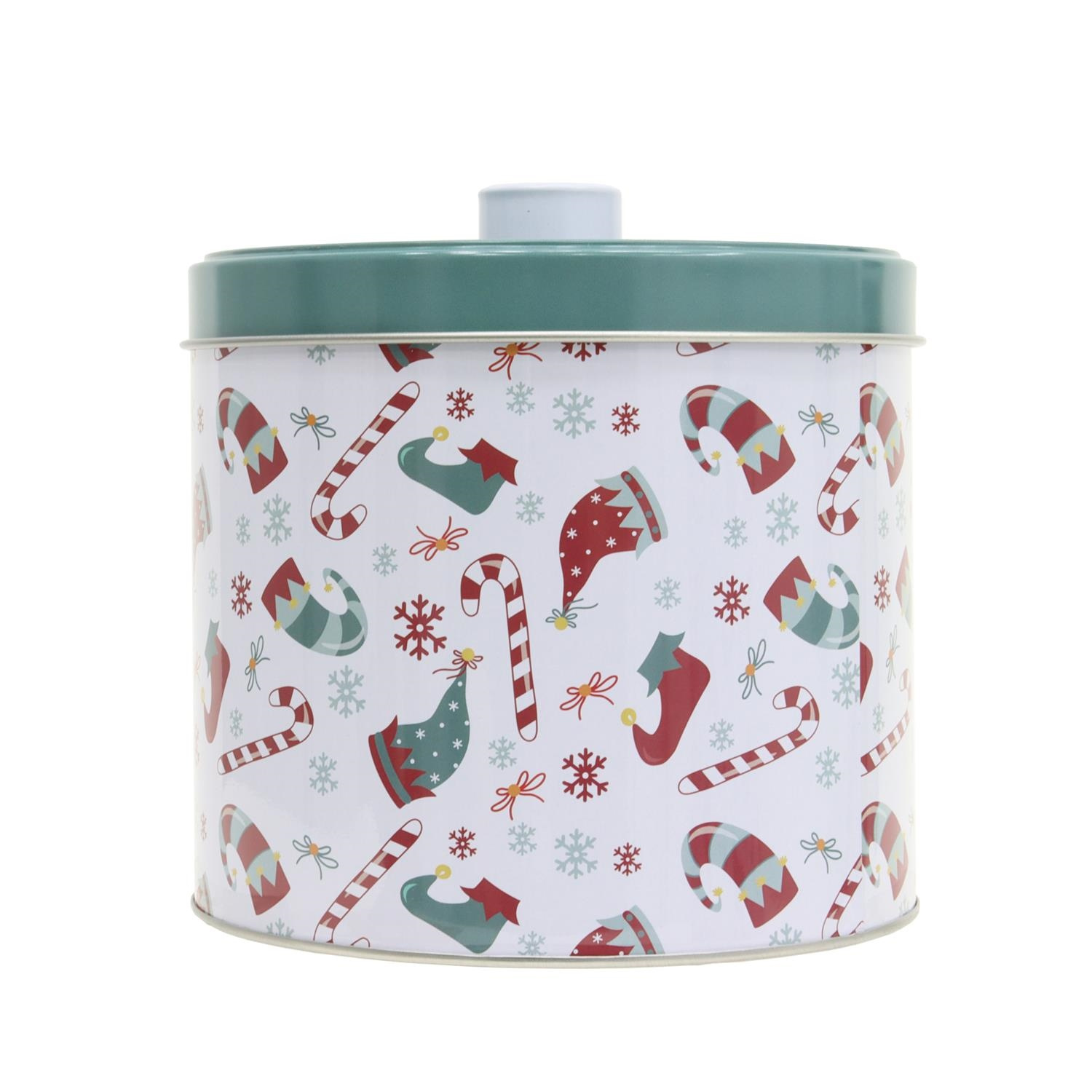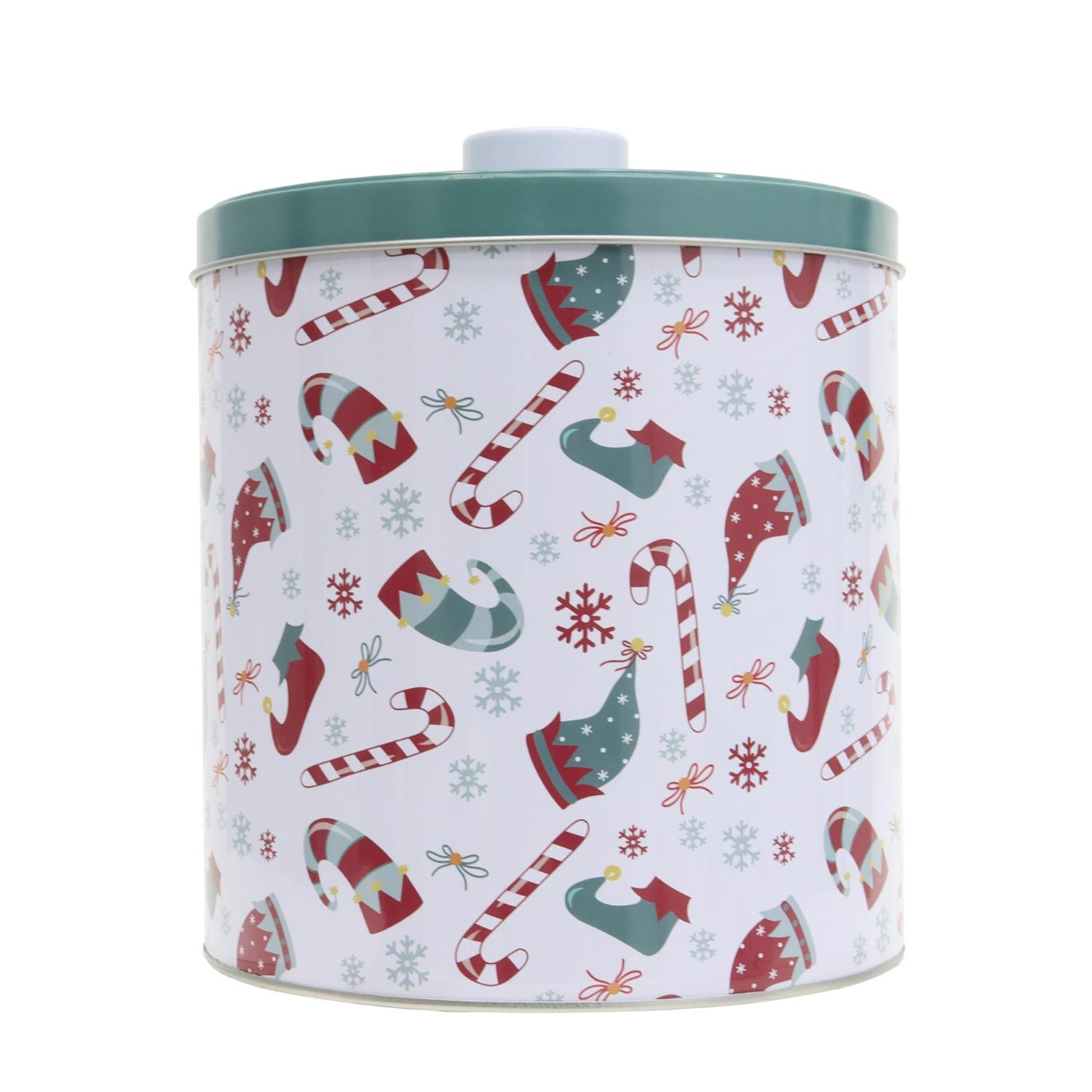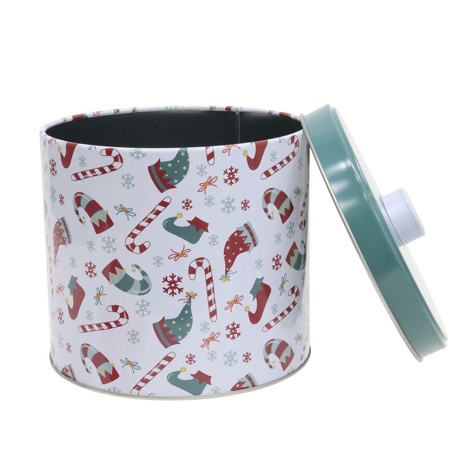 Zestaw dwóch metalowych pudełek ze świątecznym wzorem to idealne pojemniki do przechowywania świątecznych pierniczków lub cukierków. Metalowe puszki o walcowatym kształcie wyposażone zostały w pokrywki również z metalu. Dekoracyjną funkcję pojemnikom dodaje świąteczny wzór. Wymiary puszek: duża wysokośc 19,2cm średnica 17,5cm. Mała wysokość 14cm, średnica 15cm.Cechy produktu