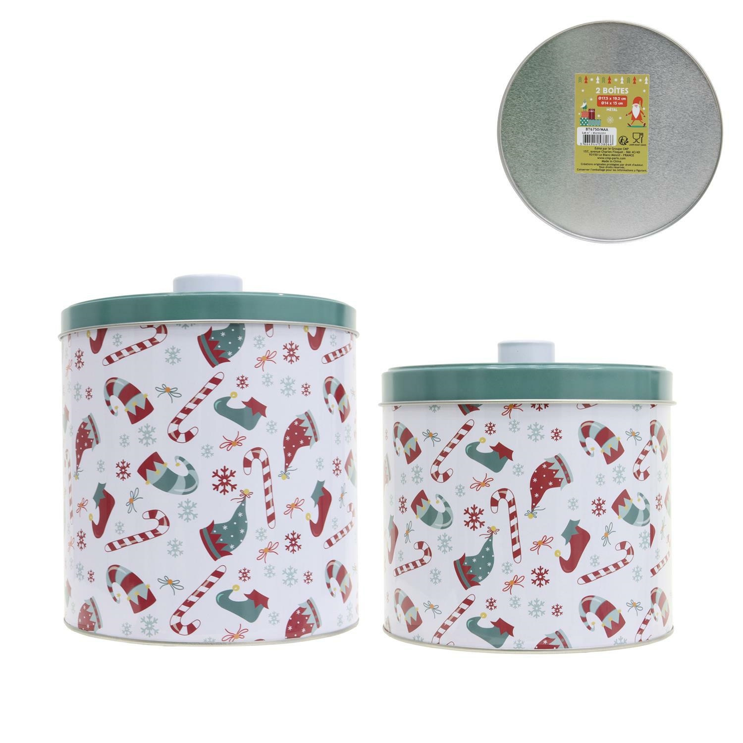 Zestaw 2 pudełek świątecznych metalowych biało/zielone