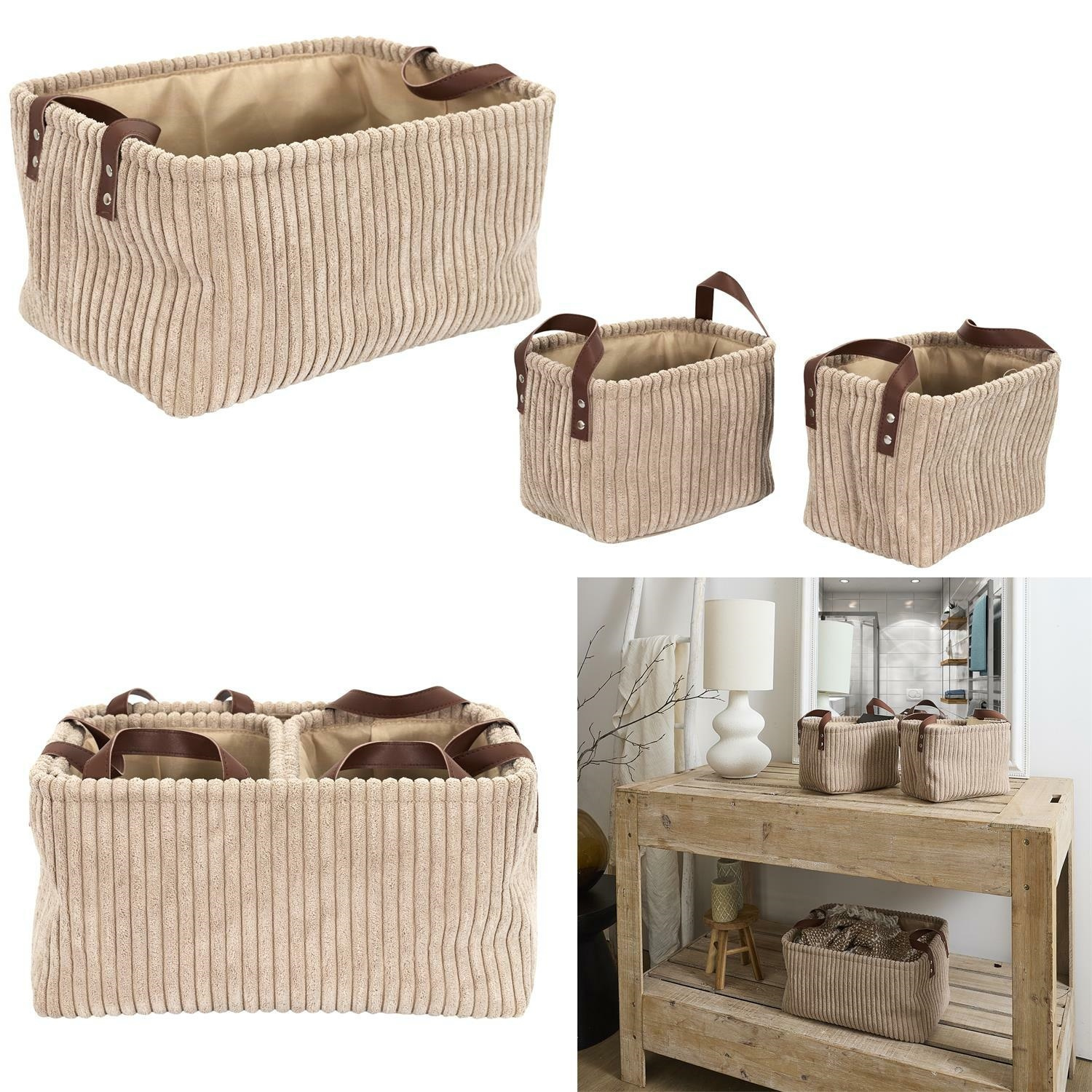 Zestaw 3 koszy Sztruks taupe | | Elite Living – Wyszukane meble i oświetlenie do domu, biura i ogrodu.