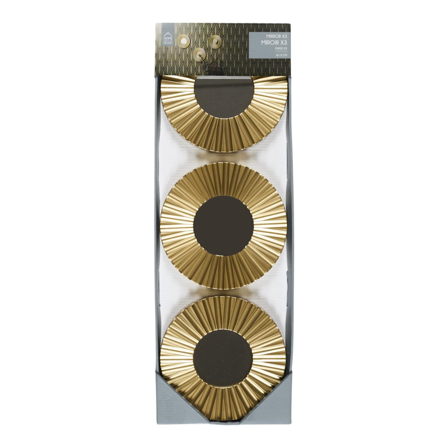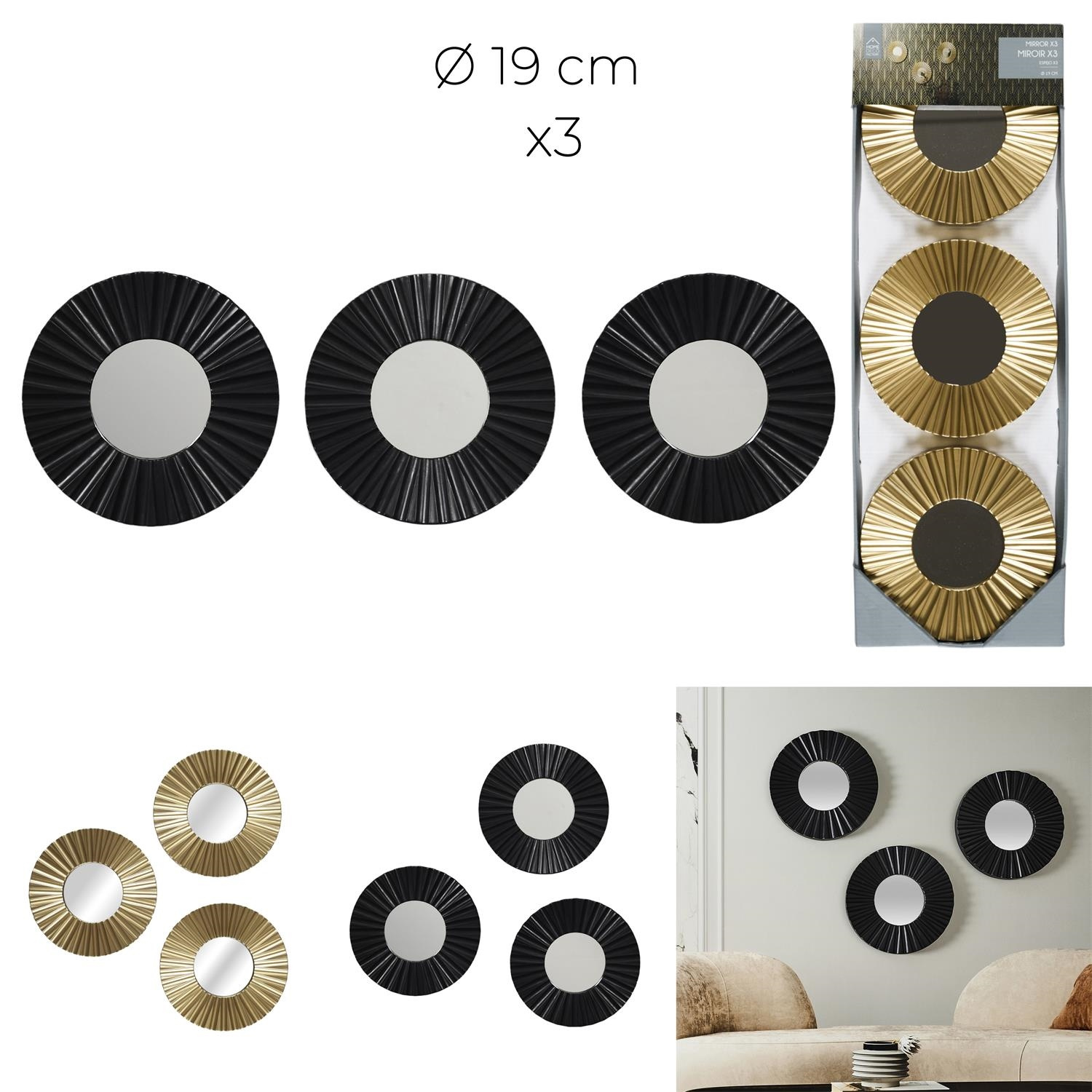 Zestaw 3 luster o średnicy 19cm t idealna ozdoba ściany salonu, sypialni lub przedpokoju. Lustra o ciekawym, harmonijkowym kształcie dodają głębi pomieszczeniu. zestaw 3 luster idealnie będzie komponowac się z kwiatami oraz zegarem w stylu japandi. Zwierciadło luster wykonane ze szkła, natomiast rama to tworzywo sztuczne. Średnica zwierciadła to 10cm.Cechy produktu