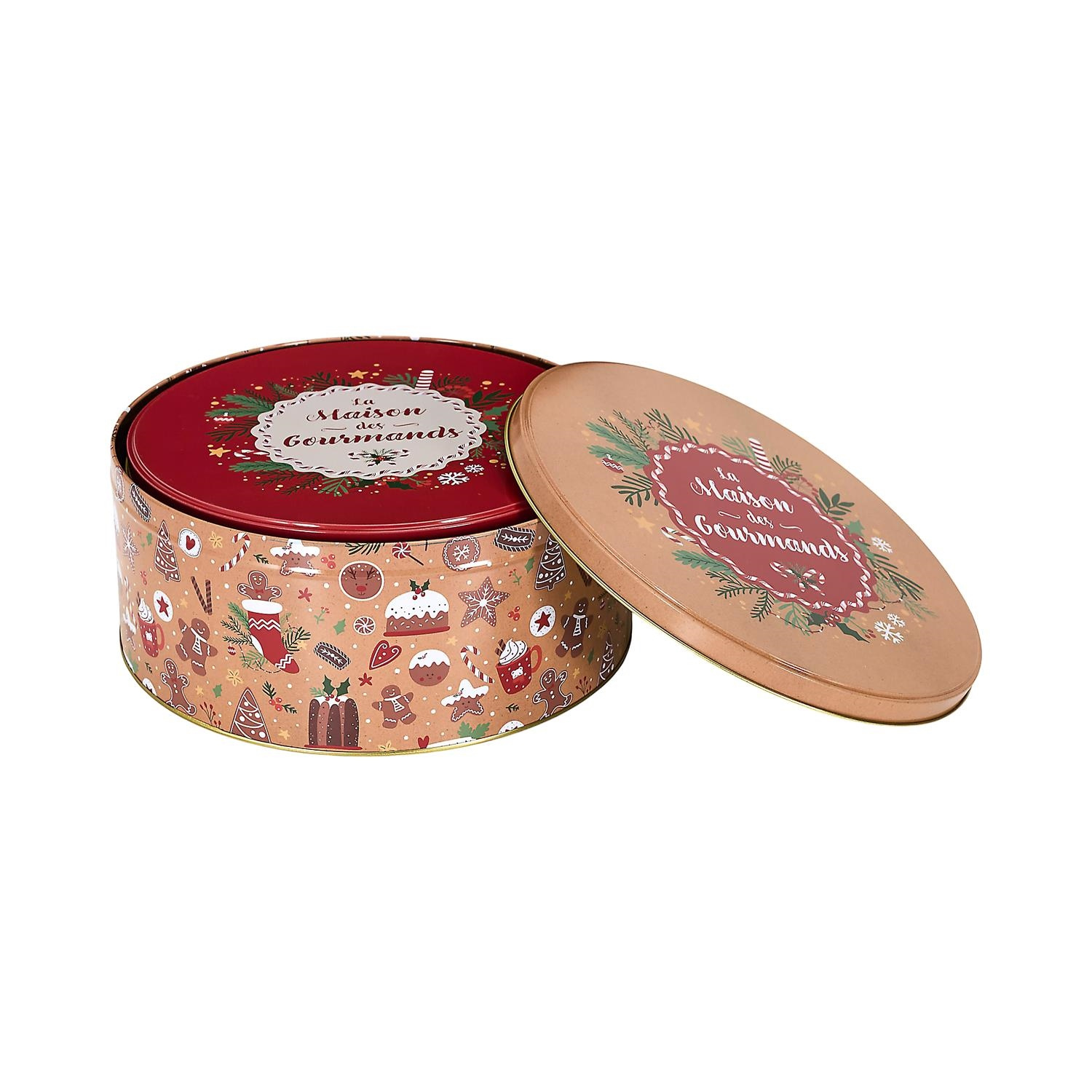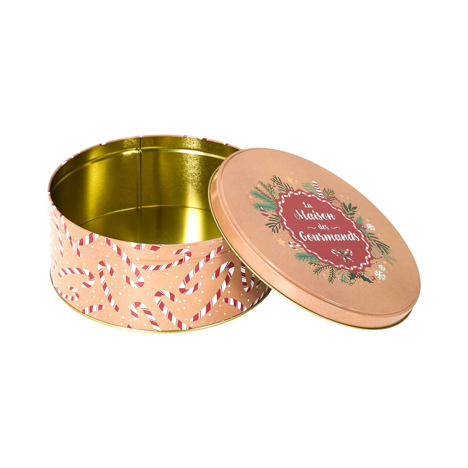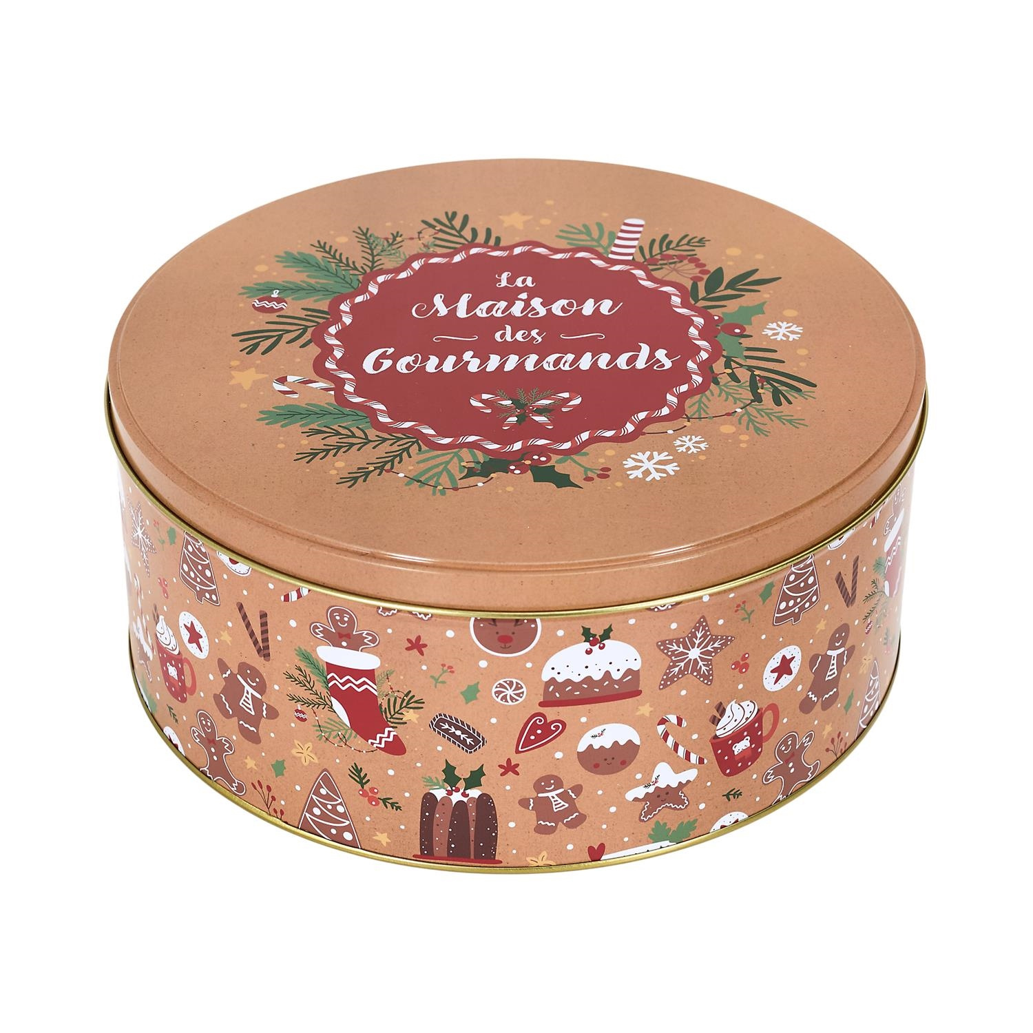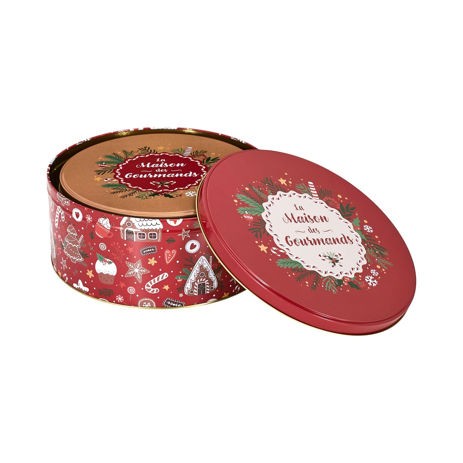 Zestaw trzech metalowych pudełek ze świątecznym wzorem to idealne pojemniki do przechowywania świątecznych pierniczków lub cukierków. Metalowe puszki o walcowatym kształcie wyposażone zostały w pokrywki również z metalu. Dekoracyjną funkcję pojemnikom dodaje świąteczny wzór. Wymiary pudełek: duże wysokość 10cm, średnica 25cm, średnie: wysokość 9cm, średnica 22cm, małe: wysokość 8cm, średnica 19,5cmCechy produktu