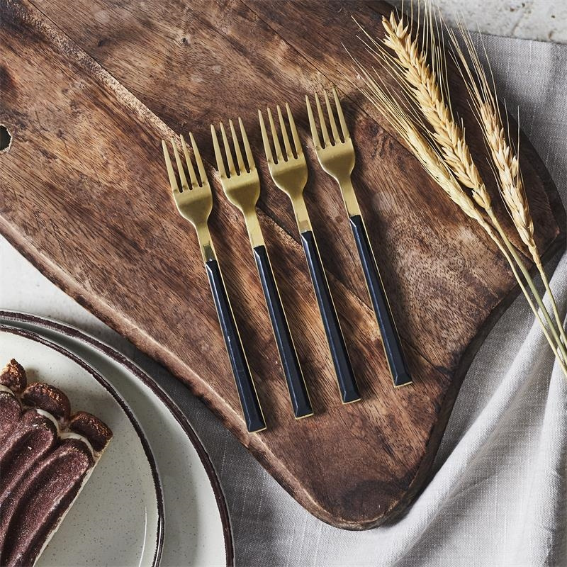Zestaw 4 widelczyków deserowych Charlotte złote/czarne