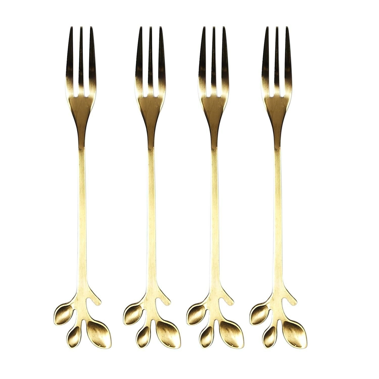 Uzupełnij swoje degustacje eleganckimi widelczykami, które są nie tylko stylowe, ale i funkcjonalne. Doskonale sprawdzą się przy serwowaniu deserów, pozwalając na precyzyjne oddzielanie i delikatne chwytanie miąższu. Ich złote wykończenie dodaje luksusowego akcentu każdemu posiłkowi. Długość: 12,2 cm Wysokość: 0,8 cm Głębokość: 1,2 cm Waga: 30 gramów Materiał: Stal nierdzewnaCechy produktu