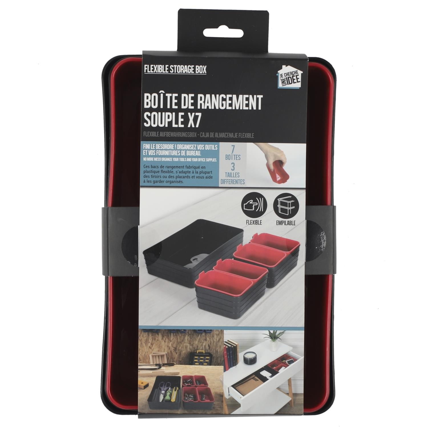 Zestaw 7 organizerów czarne/czerwone