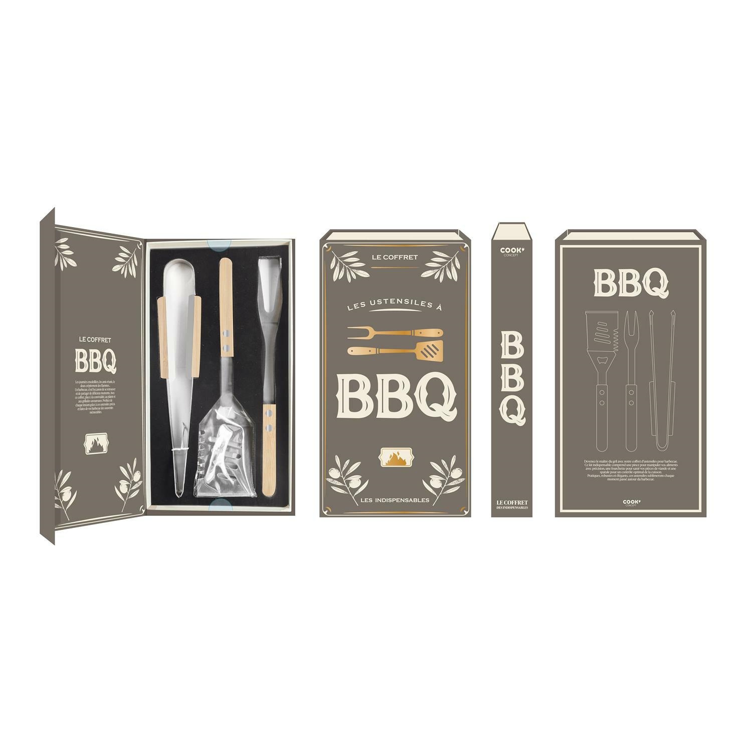Zestaw do serwowania dań z grilla to idealny element kuchni osoby, która lubi degustować nowe i klasyczne smaki. Zestaw zawiera widelec z dwoma zębami, szczypce oraz szpatułę. Efektowne etui zestawu w kształcie książki kucharskiej może być również ozdobą kuchni. Etui imitujące książkę ciekawie maskuje narzędzia, każde z nich ma swoje miejsce w etui.Cechy produktu