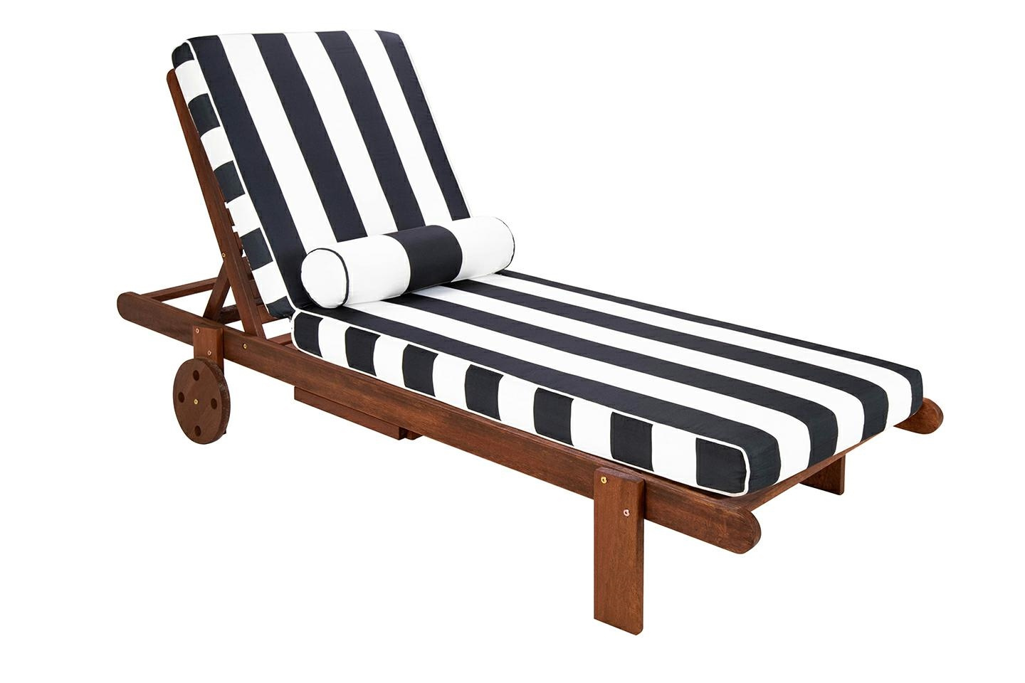 - Zestaw ogrodowy AZURE leżak z materacem i poduszką biało-czarny. Doskonała forma letniego relaksu połączona z luksusowym wykonaniem. Wygodny leżak z możliwością regulacji oparcia i wbudowanymi kółkami wykonano z wysokiej jakości drewna. Biało-czarny mater
