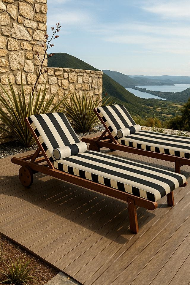 Zestaw ogrodowy AZURE leżak z materacem i poduszką biało-czarny
