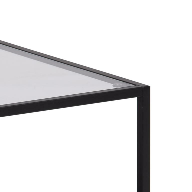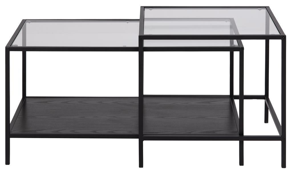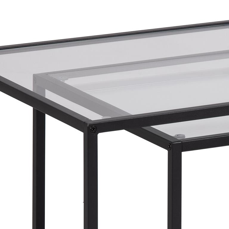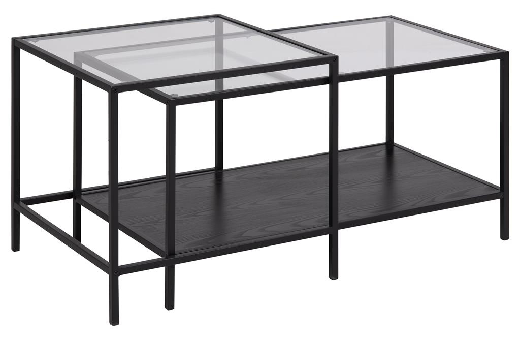 - Zestaw stolików kawowych Seaford to meble w stylu industrialnym idealne do nowoczesneo salonu bądź poczekalni. Szkielety stolików wykonane są z malowanego proszkowo metalu w kolorze czarnym. Ich blaty wykonane są z lekko dymionego szkła. Wyższy stolik pos