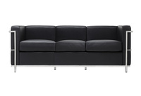 Sofa trzyosobowa SOFT LC2 czarna - włoska skóra naturalna, metal