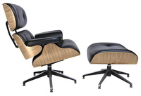 Fotel biurowy LOUNGE BUSINESS czarny z podnóżkiem - sklejka orzech, skóra naturalna, stal polerowana